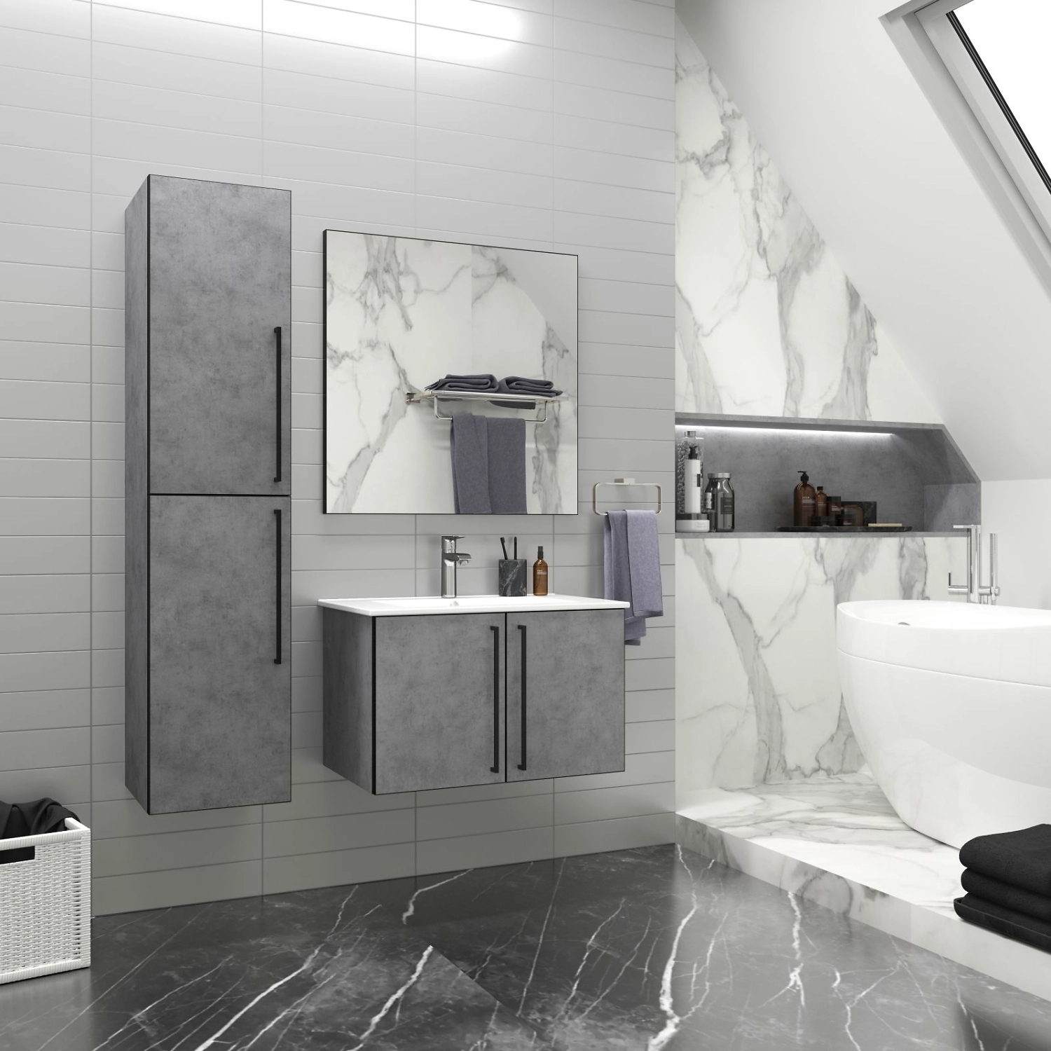 ### Пенал для ванной Brevita Rock 35 светло-серый бетон, правый ROCK-05035-48-2П