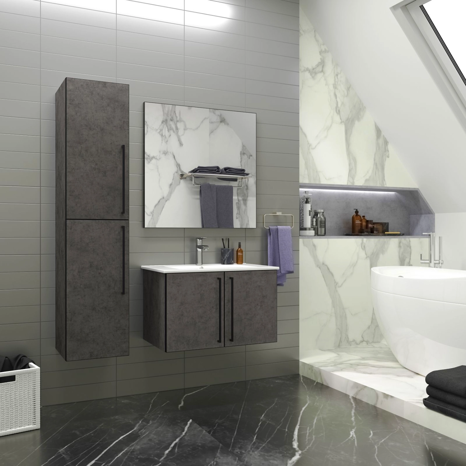 ### Пенал для ванной Brevita Rock 35 темно-серый бетон, левый ROCK-05035-50-2Л