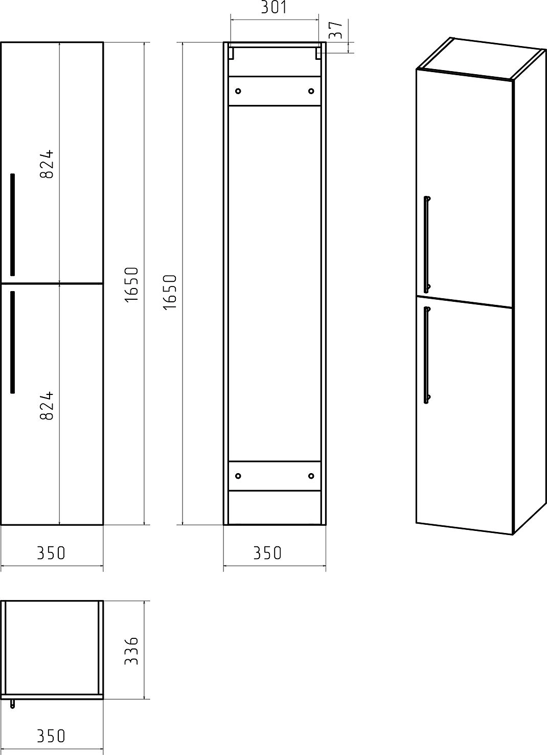 Подвесные шкафы-пеналы Rock изготавливаются в традиционном размере - шириной 35 см.