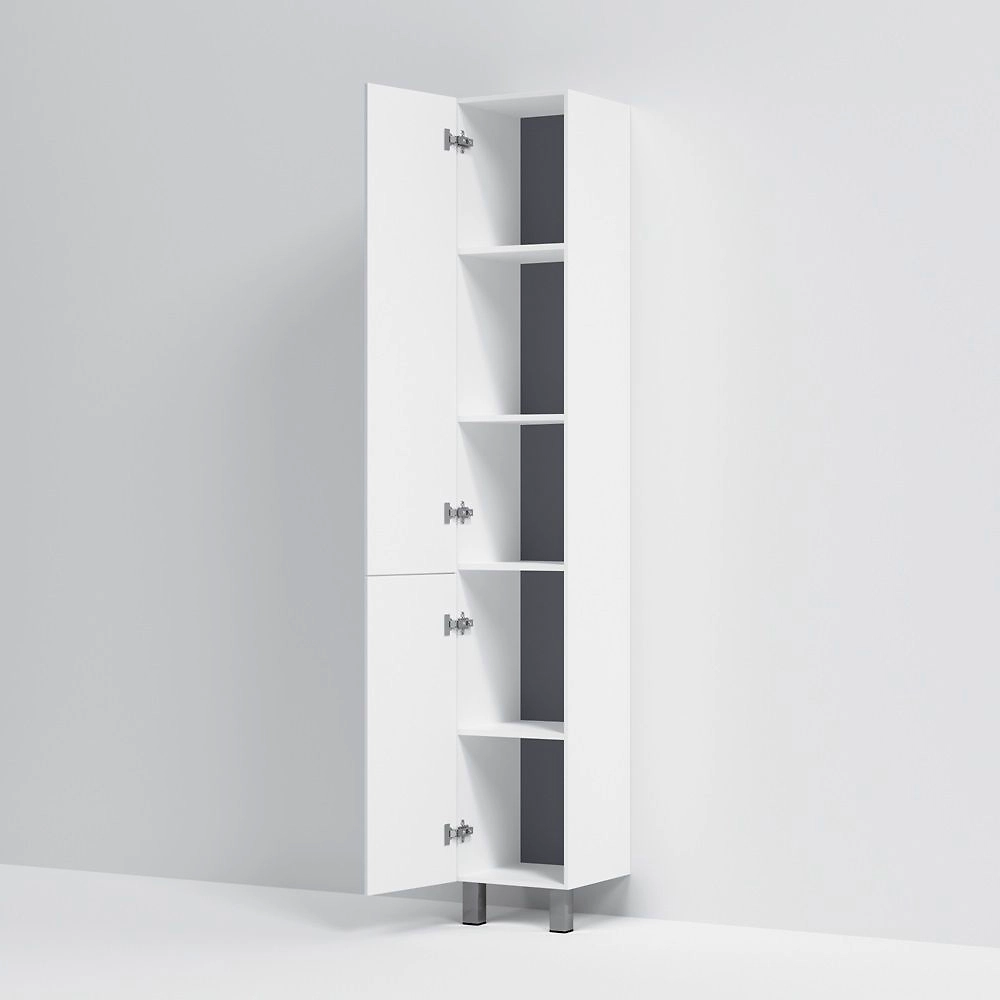 Шкаф-пенал AM.PM Gem - рациональное решение для хранения вещей в ванной комнате. Два отделения с полками закрыты распашными дверцами без ручек.