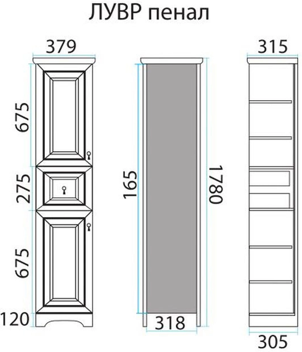 Шкаф пенал напольный MISTY Лувр 178x37,9 см слоновая кость