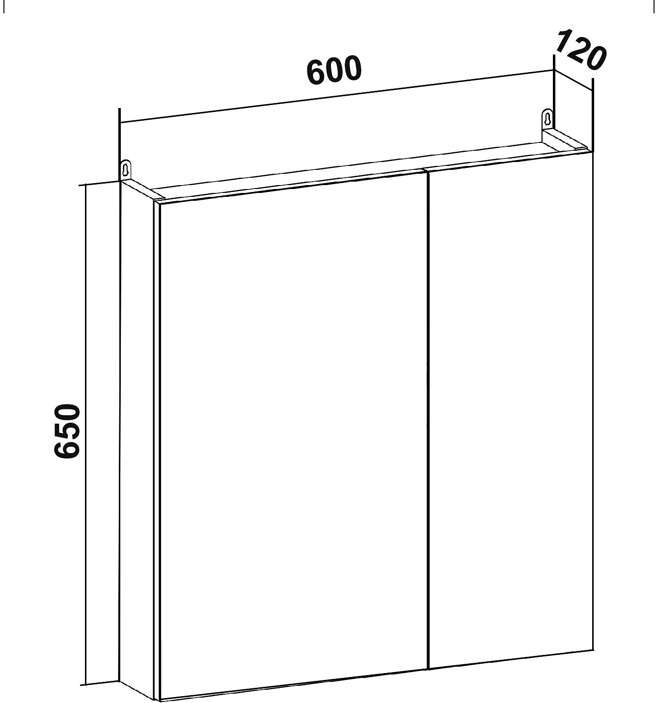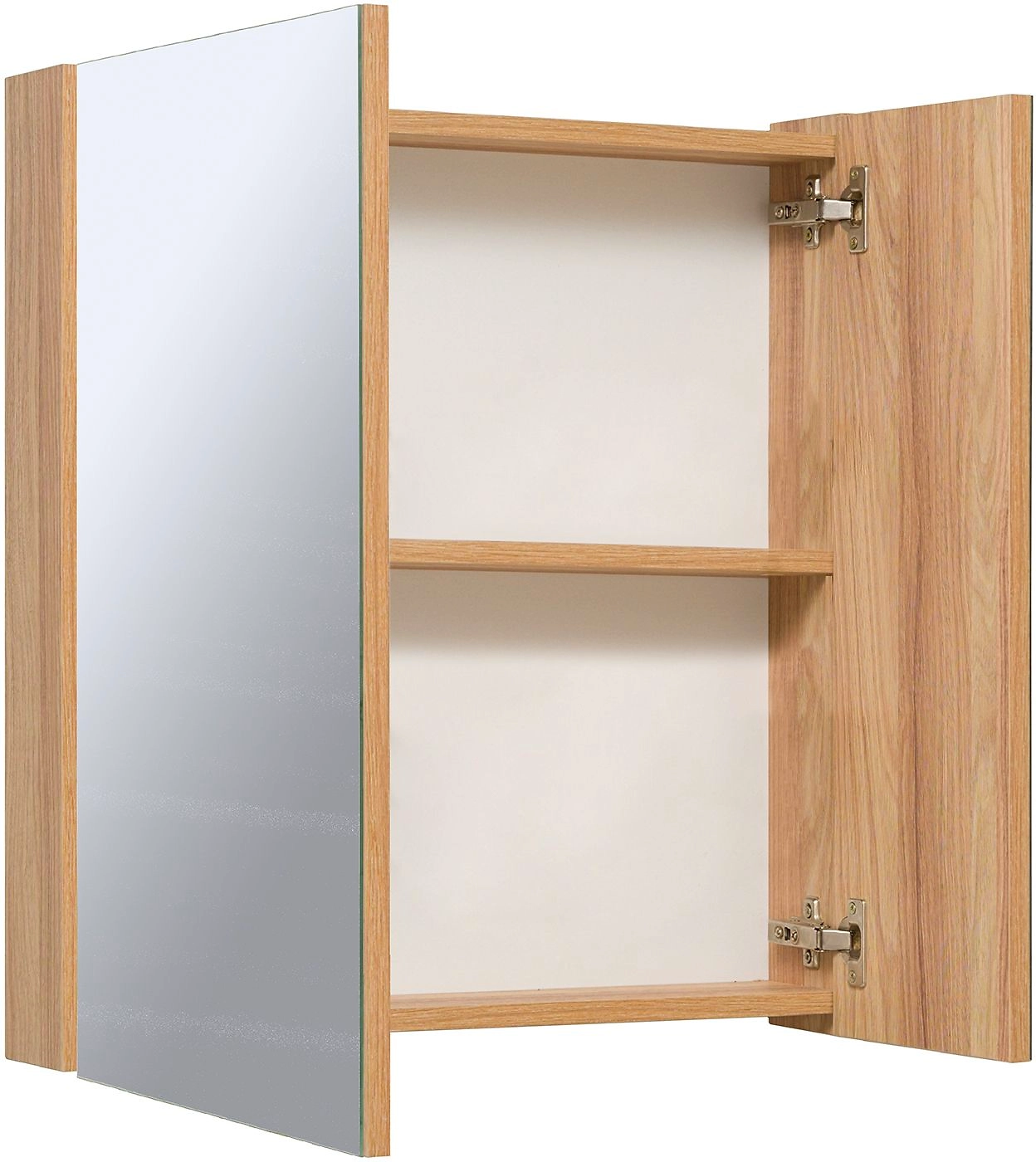 Зеркальный шкаф имеет две распашных дверцы с зеркальным фасадом и внутреннюю полку.