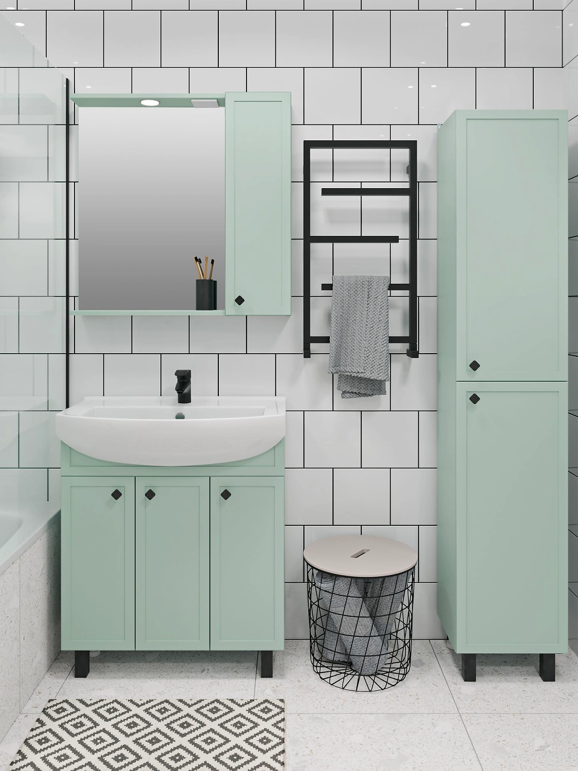 Зеркало шкаф для ванной РИМИНИ выполнено в стильном цвете - серая мята.