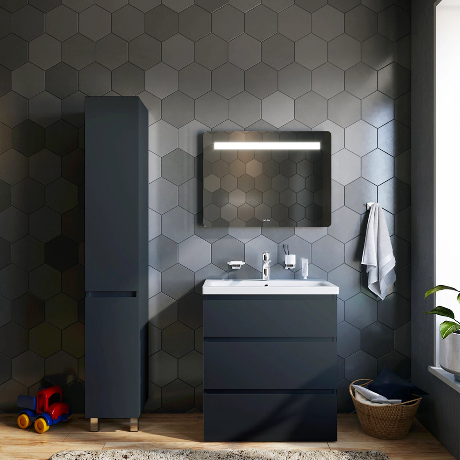Новый взгляд на минимализм – трендовый дизайн теперь доступен и в сегменте эконом. Компактное дизайнерское решение: узкая база с глубокими ящиками идеально впишется в санузел любого размера без ущерба для вместительности. Безупречный баланс между функциональностью и дизайном в керамической раковине. Самые модные цвета и отделки – в коллекции представлены глянцевые и матовые варианты, а также имитация натурального дерева.