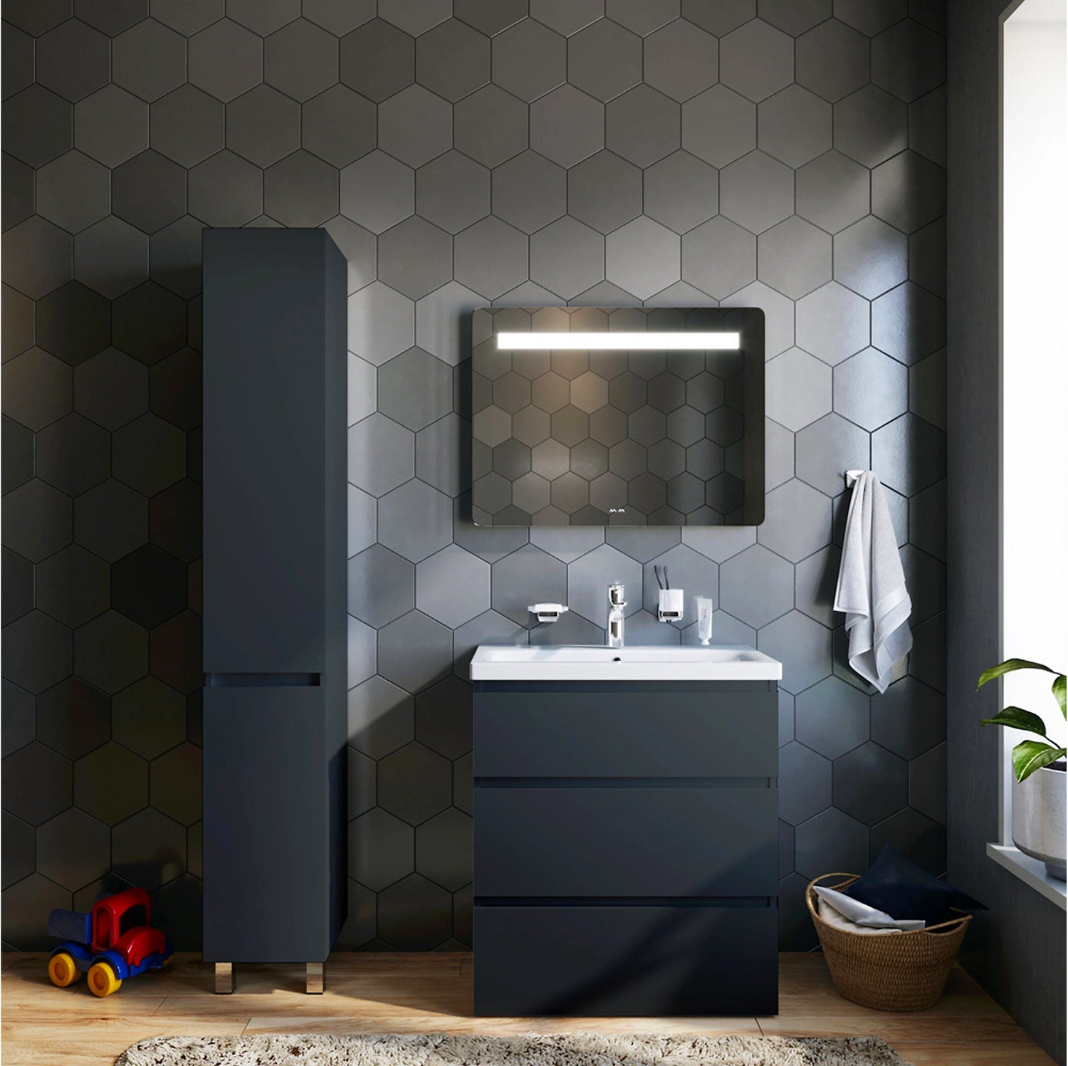 Современный европейский дизайн от DanelonMeroni (Великобритания/Италия). Уникальный нижний ящик базы может быть использован как: выдвижная подставка для детей, для удобного мытья рук (выдерживает нагрузку до 60 кг) дополнительная ниша для хранения (экономия пространства ванной комнаты).