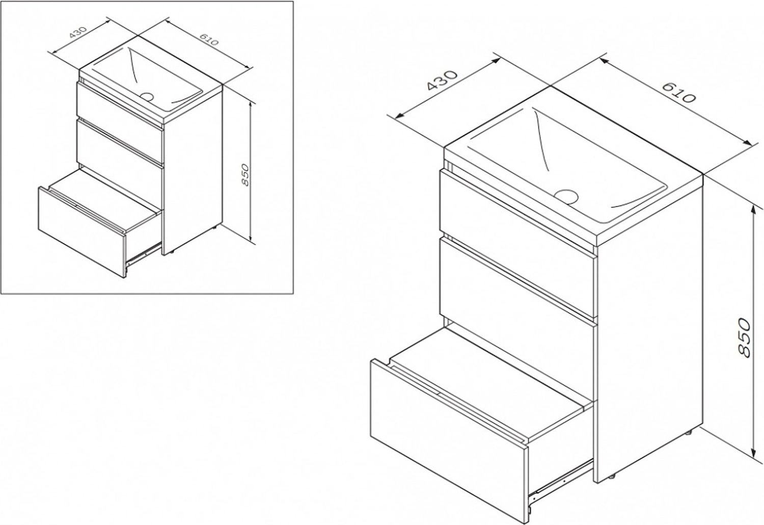 Компактная напольная тумба под раковину AM.PM GEM S с тремя ящиками удобна для хранения моющих средств и гигиенических принадлежностей, занимает минимум места и скрывает сантехнические коммуникации.