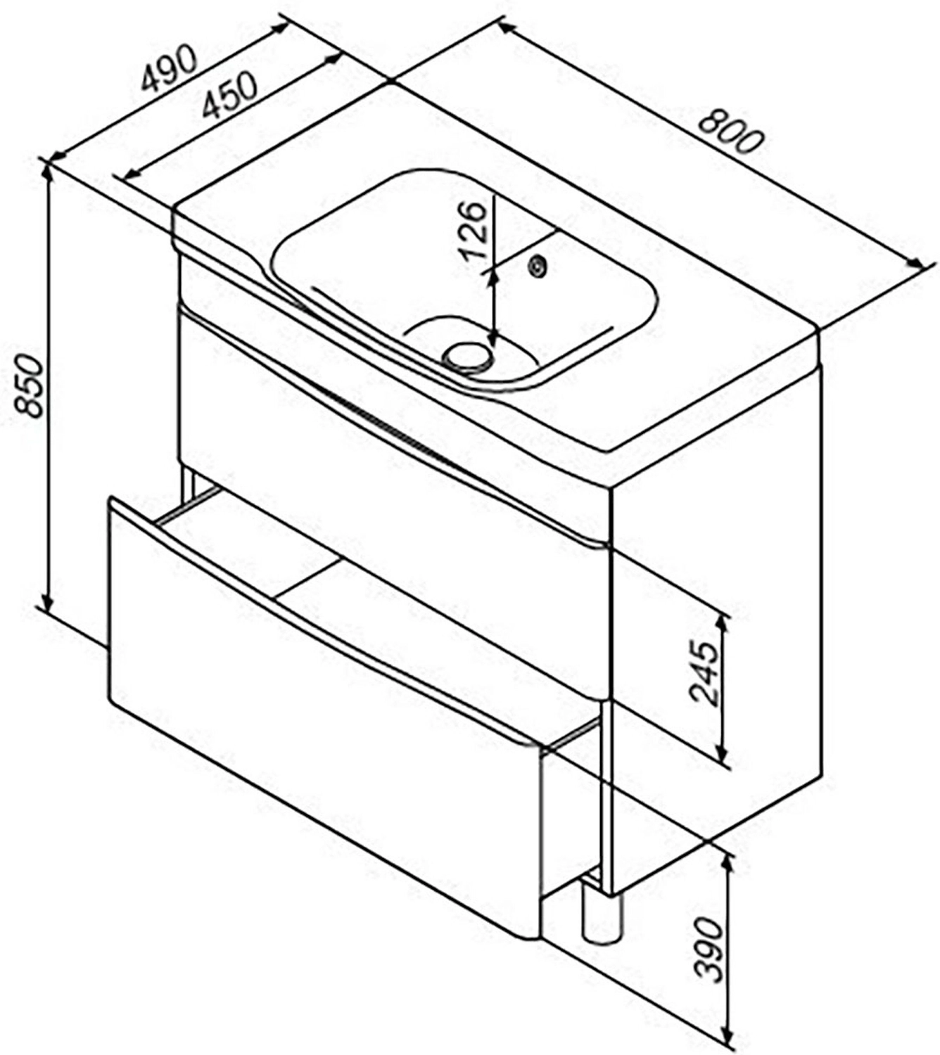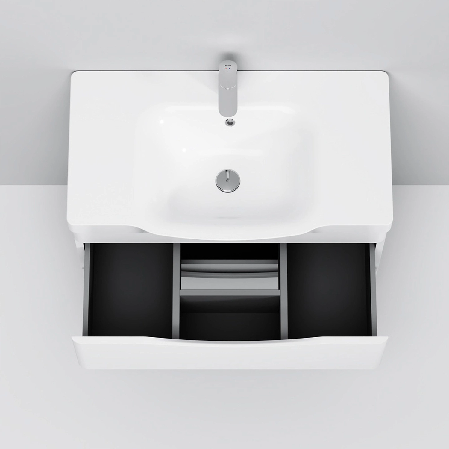 Удобная и функциональная тумба под раковину AM.PM Like на ножках шириной 80 см имеет два вместительных выдвижных ящика.