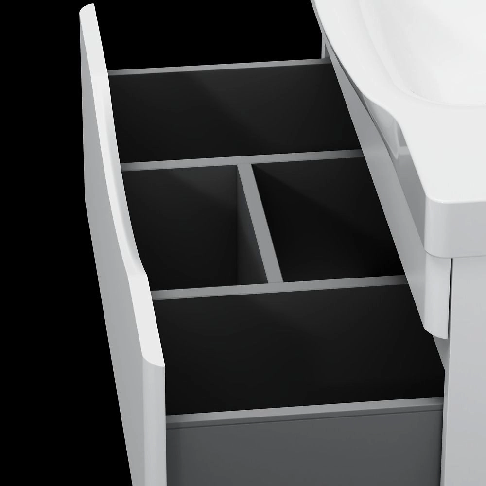 - Удобные ручки, встроенные в фасад, в точности повторяют изгибы раковины из коллекции Like.