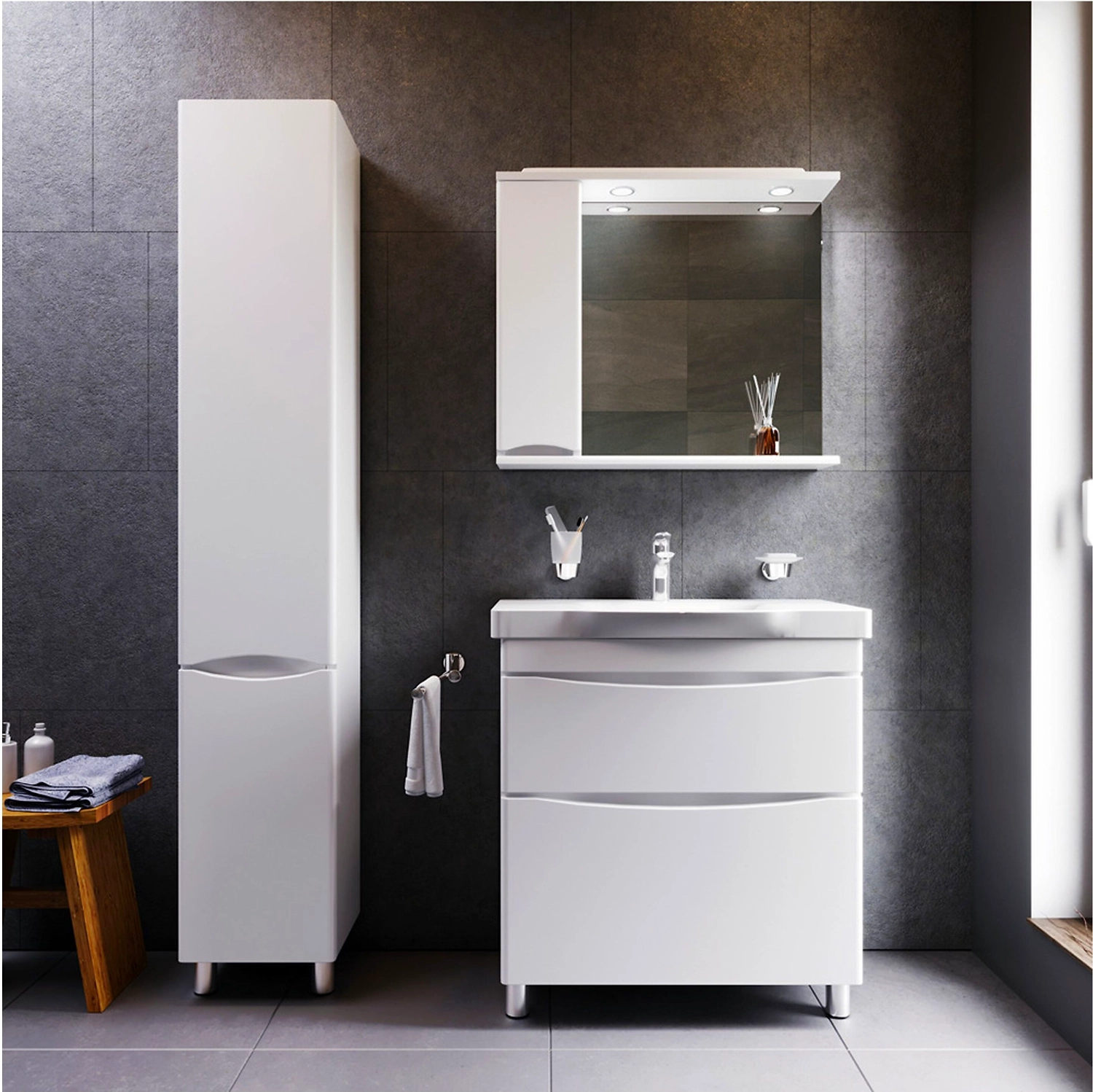 Тумба устанавливается на пол в ванной комнате, прекрасно сочетается с раковиной, смесителем, аксессуарами и другой мебелью из коллекции Like.