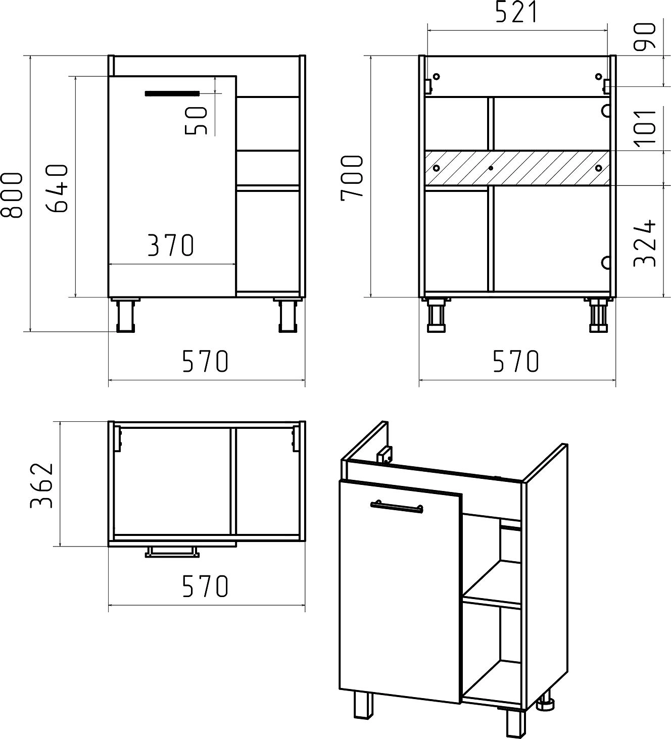 ### Комплект мебели для ванной Крафт представлен следующими изделиями: