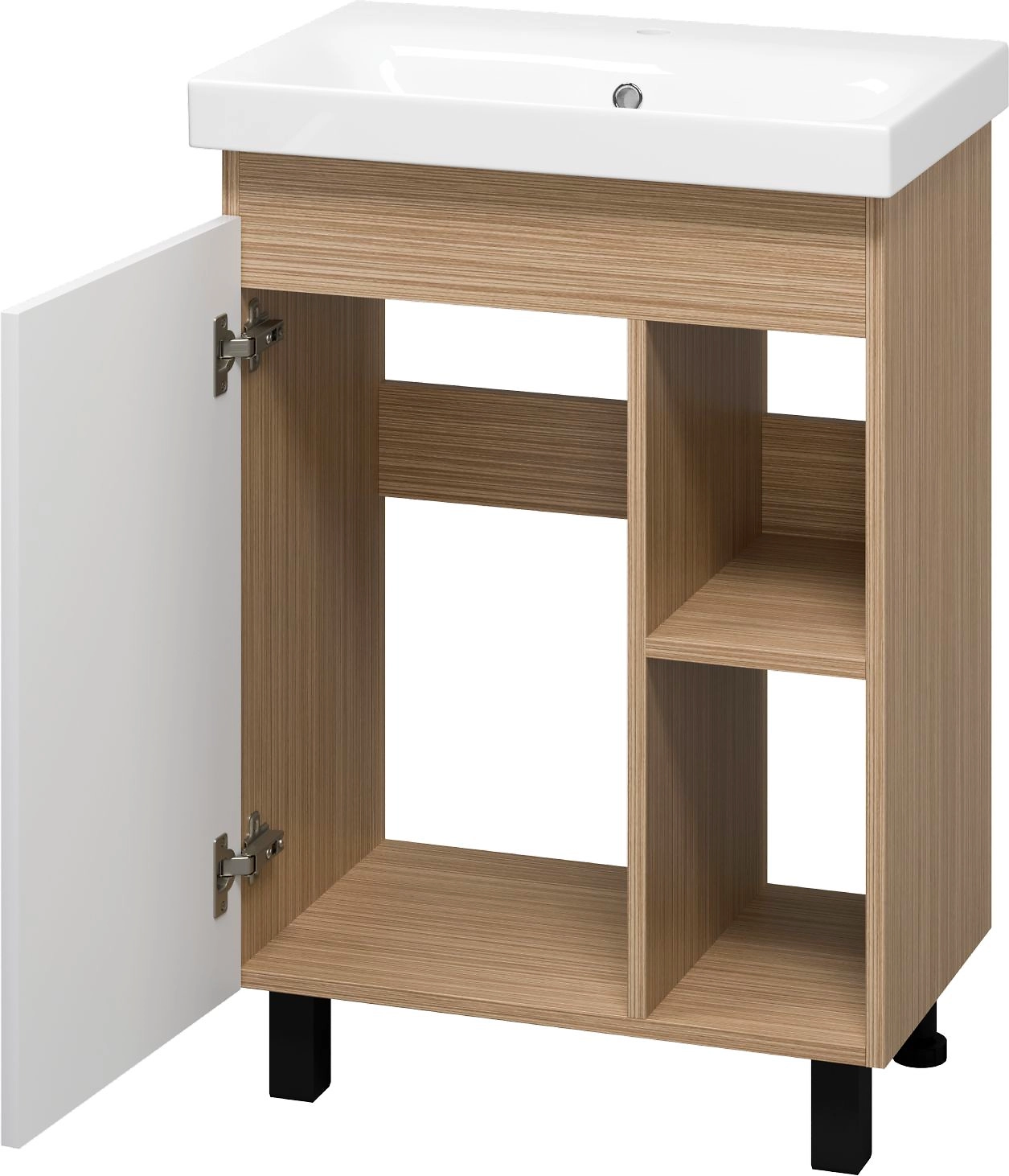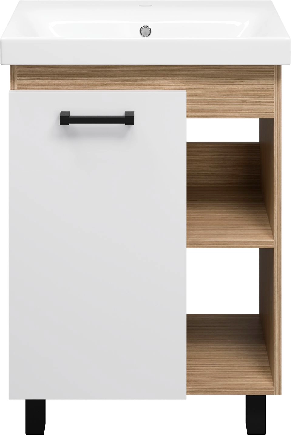 Тумба напольная под раковину MISTY Крафт 70х57 см МДФ белый/зебрано