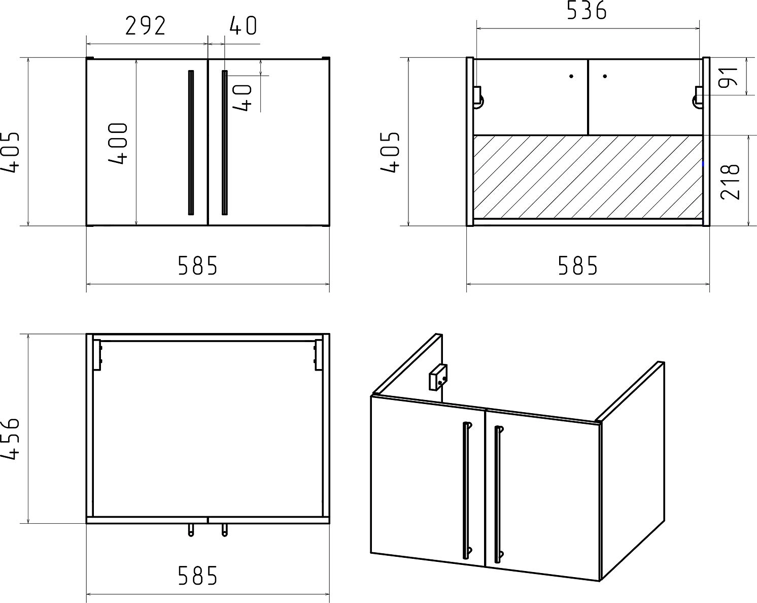 Подвесные тумбы Brevita Rock оснащены двумя распашными фасадами, за которыми находится единое большое пространство для хранения бытовой химии и различных аксессуаров.
