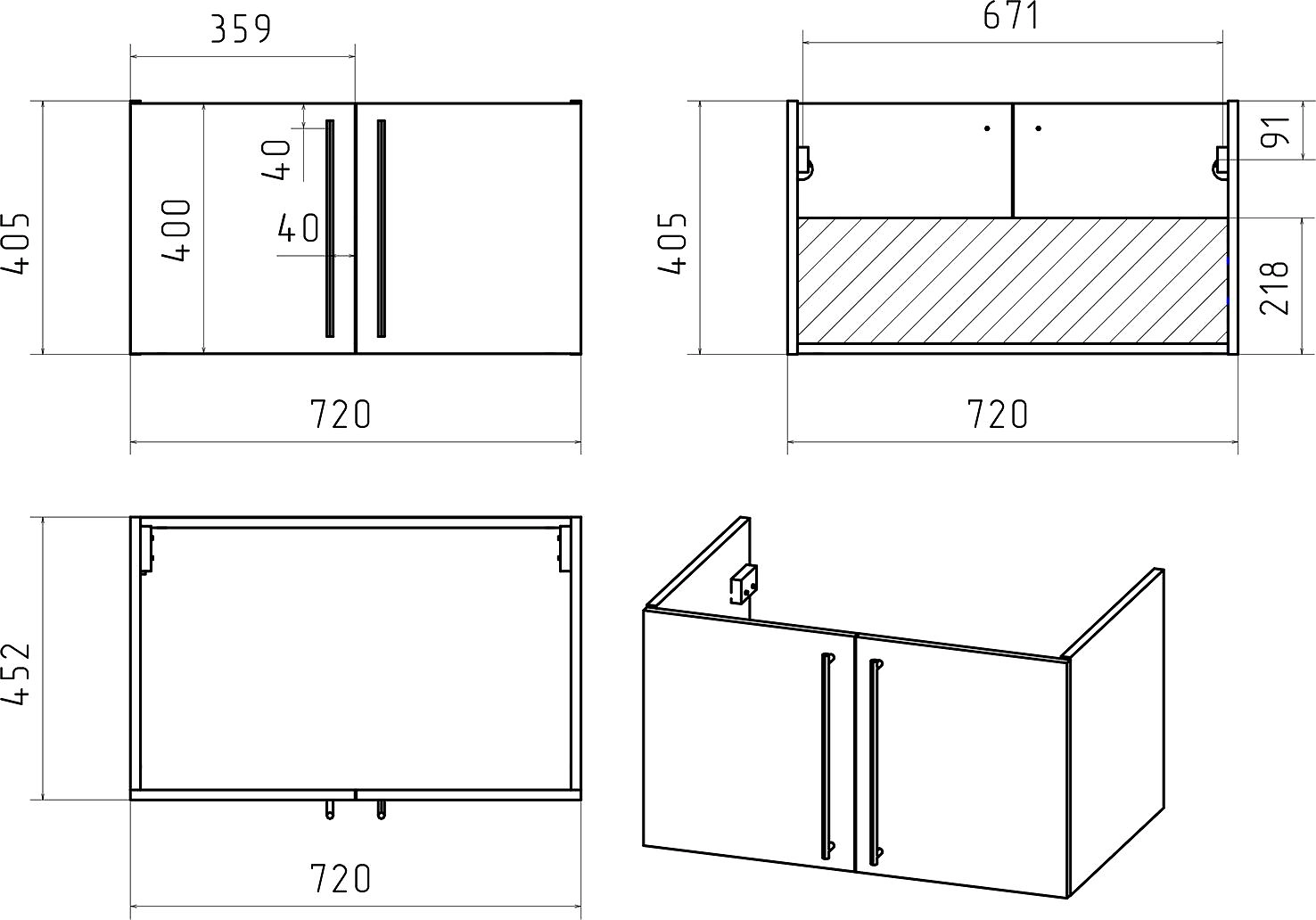 Подвесные тумбы Brevita Rock оснащены двумя распашными фасадами, за которыми находится единое большое