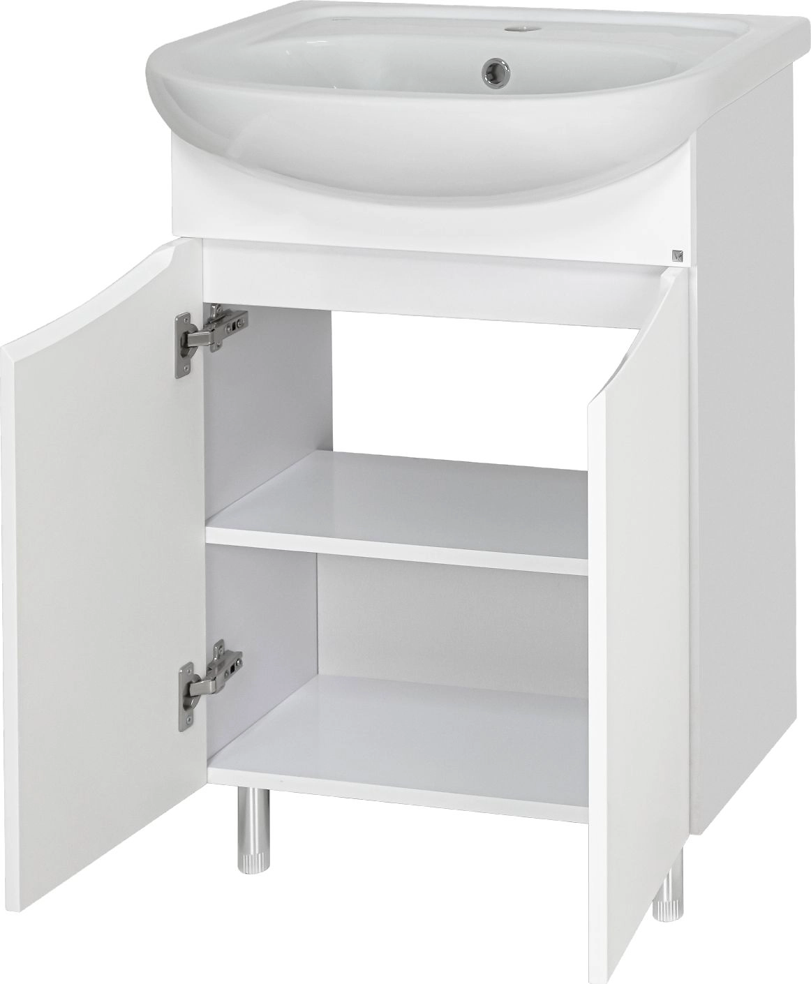 Напольная тумба для ванной **Мисти Смайл 60 белая эмаль** под раковину EcoKerama Sonata 60 (>>> Раковина в стоимость товара не входит, её необходимо приобретать отдельно!