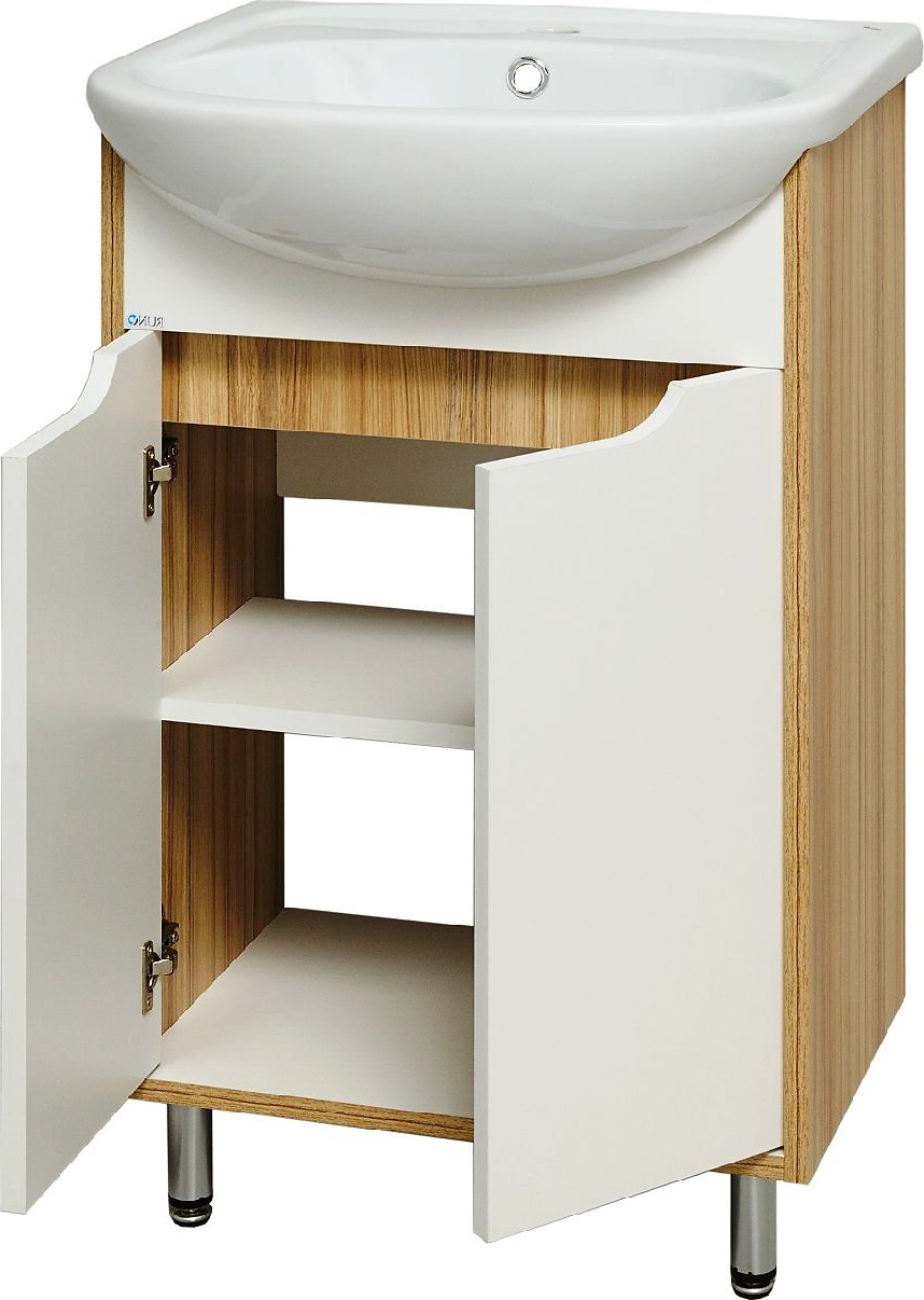 Напольная тумба Runo Эко используется для обустройства ванной комнаты, устанавливается совместно с умывальником шириной 50 см.