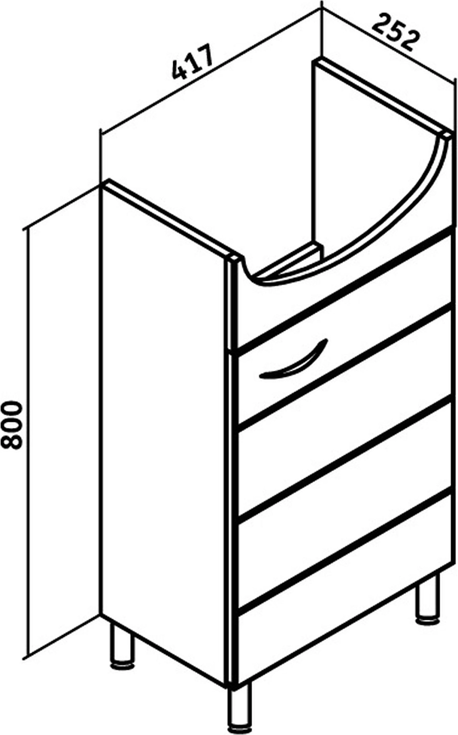 Runo Кипарис - напольная тумба для установки под раковину с закрытым фасадом из МДФ и корпусом из влагостойкой ЛДСП. Мебель обтянута пленкой ПВХ, что обеспечивает ей привлекательный вид и защиту от внешних воздействий.