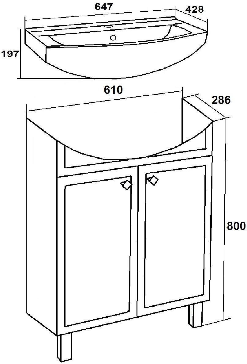 К тумба подходит керамическая раковина "Best 65" (647\*428 мм), глубиной 19,7 см.