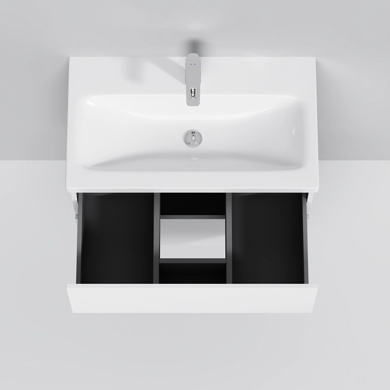Тумба AM.PM GEM монтируется на стену, используется совместно с раковиной шириной 75 см.