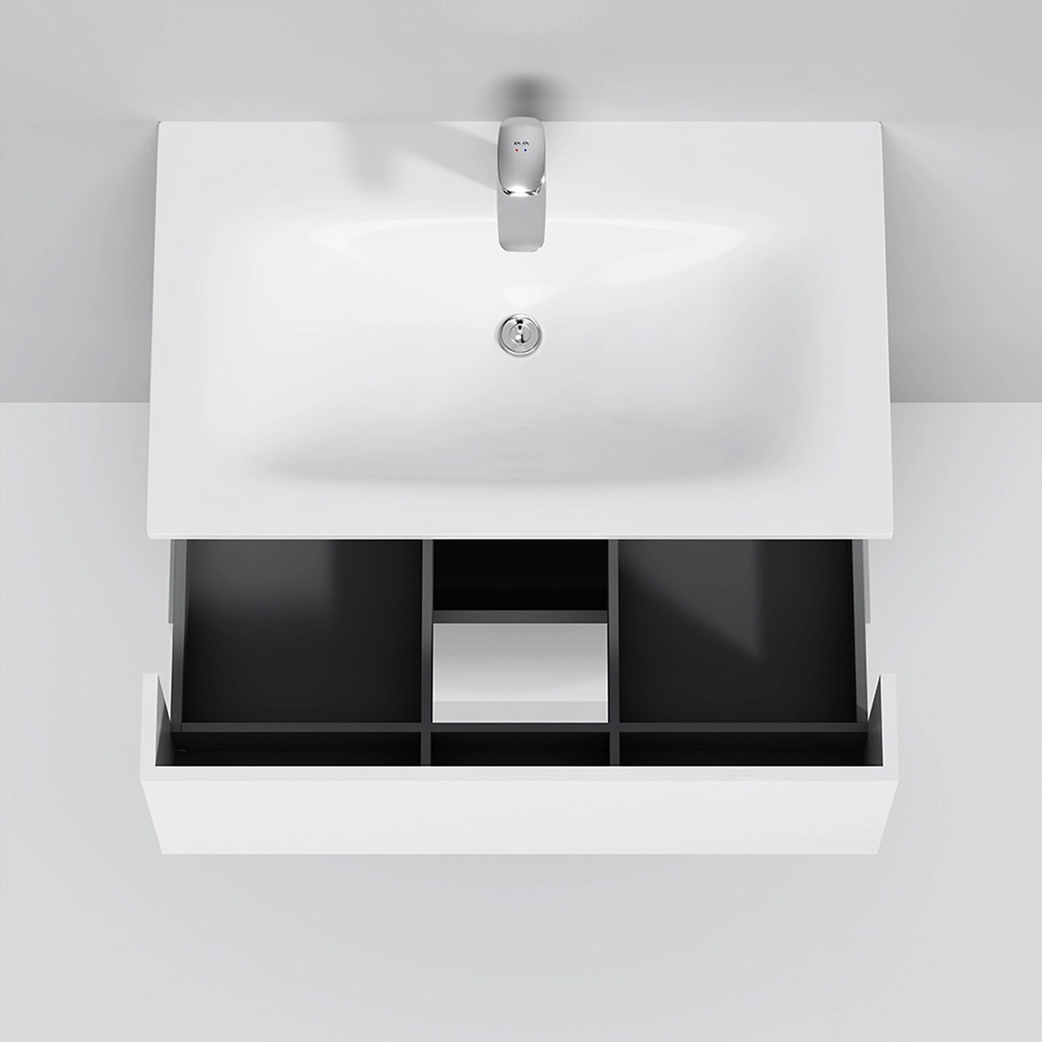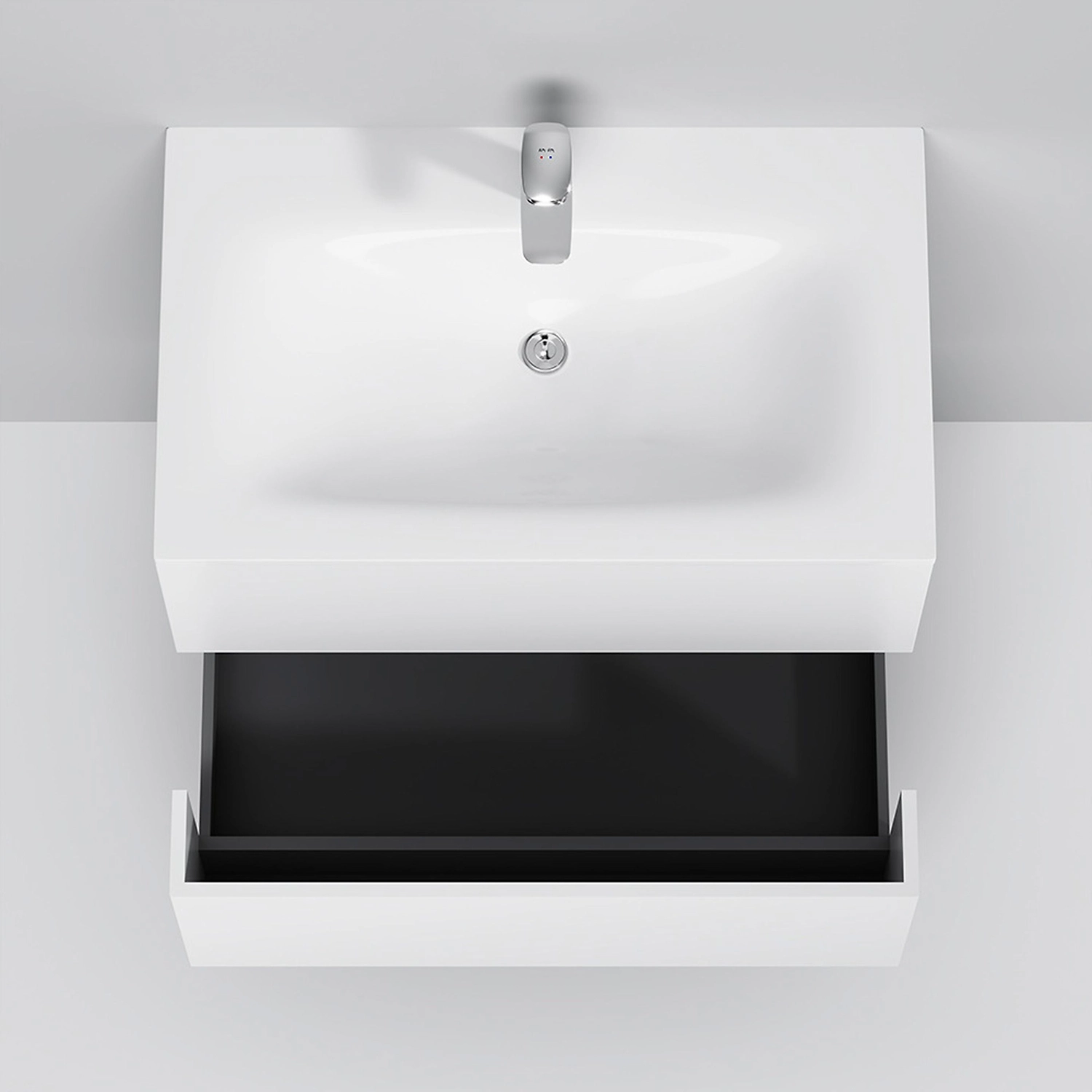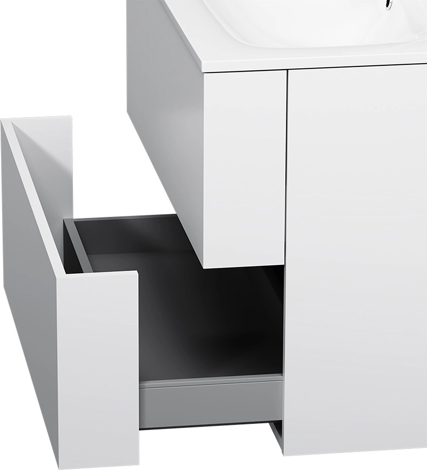 Тумба крепится на стену в ванной комнате или туалете совместно с мебельной раковиной из коллекции Spirit.