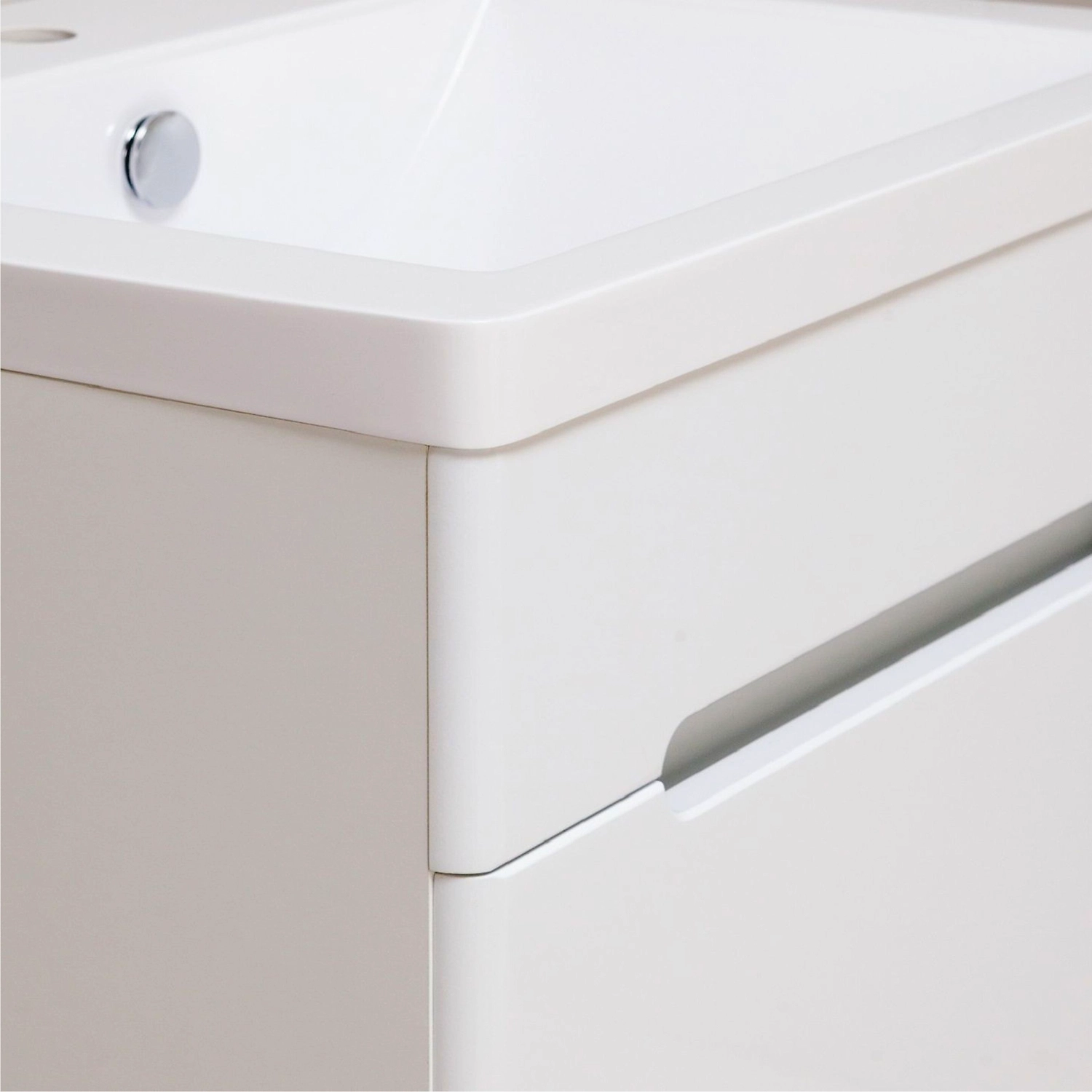 Тумба под умывальник подвесная с одним выдвижным ящиком на шариковых направляющих скрытого монтажа с доводчиком.