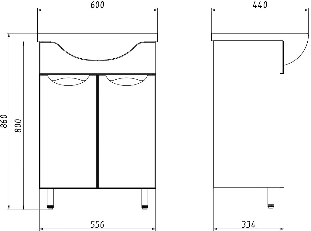 Напольная тумба Ариа выполнена в современном, минималистичном стиле. Материал фасада - МДФ, корпус изготовлен из влагостойкой ДСП. Модель оснащена двумя дверцами с оригинальными ручками черного цвета.