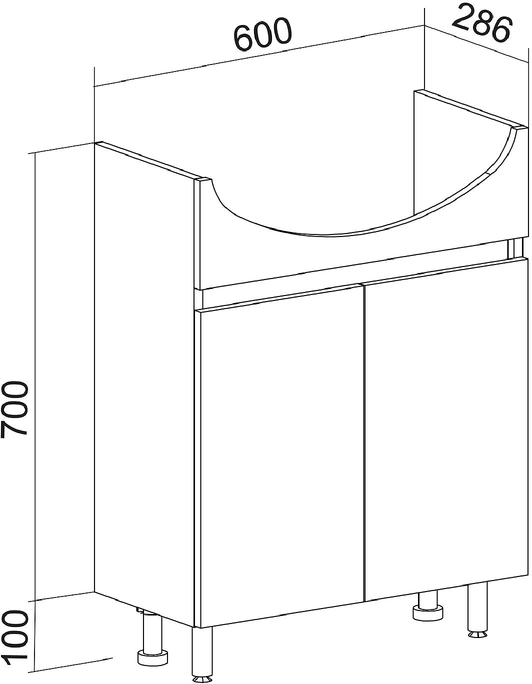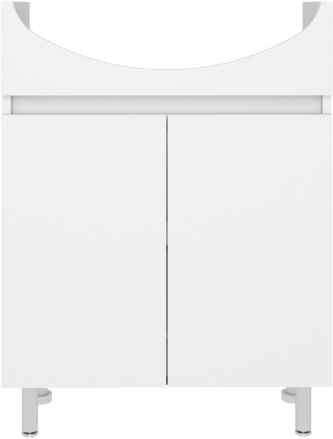 Тумба под умывальник напольная с двумя распашными фасадами и одной внутренней полкой. В комплекте идут ножки хром - 2 шт, ножки пластик - 2 шт.