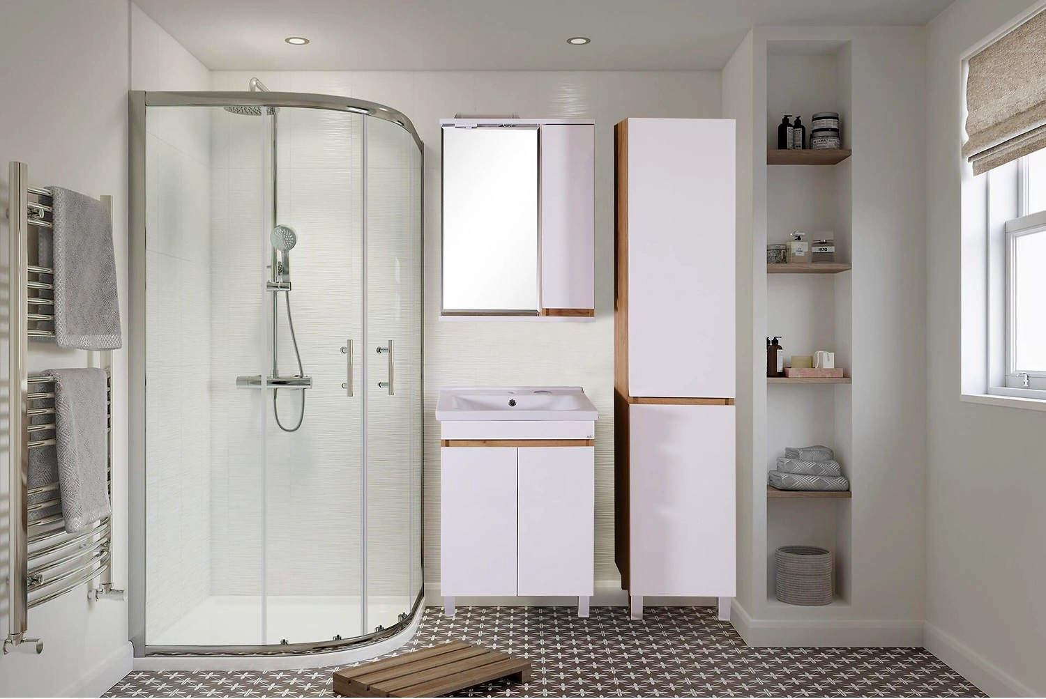 - Яркая подсветка помогает лучше рассмотреть отражение в зеркале и содержимое шкафа.