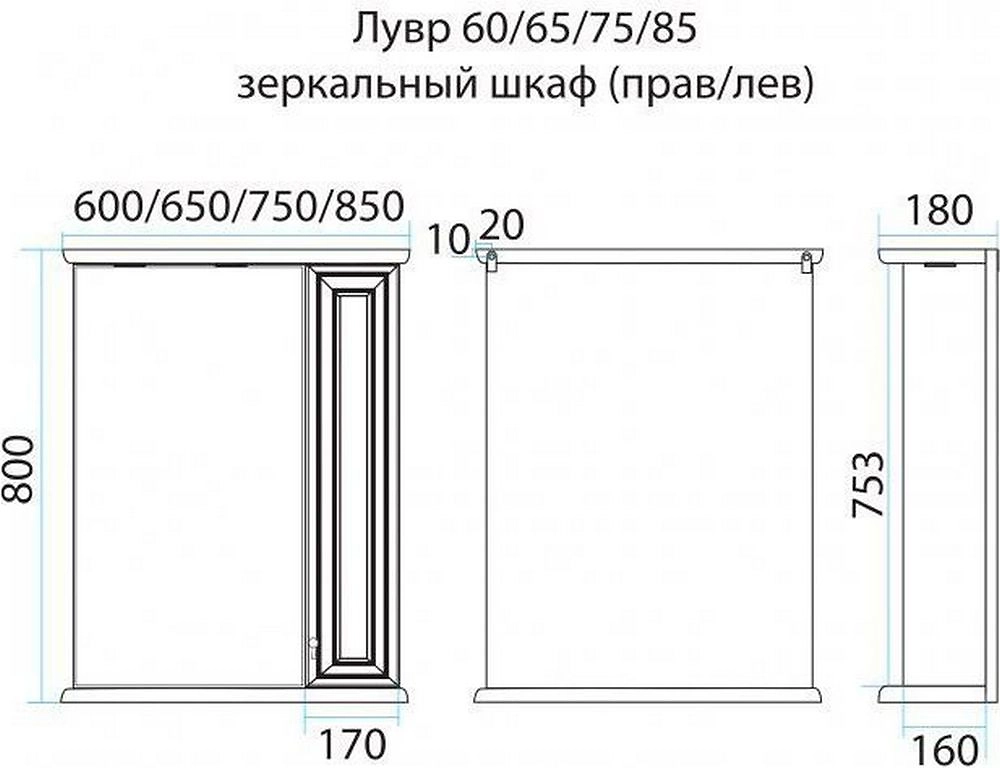 Зеркальный шкаф Лувр Слоновая кость выполнен из ламинированного ДСП, для фасада использован массив бука. Мебель гармонично впишется в классические интерьерные стили - барокко, арт-деко, ампир и пр.