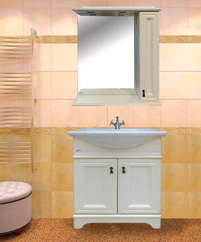 Шкаф зеркальный навесной MISTY Лувр 80х75 см массив слоновая кость