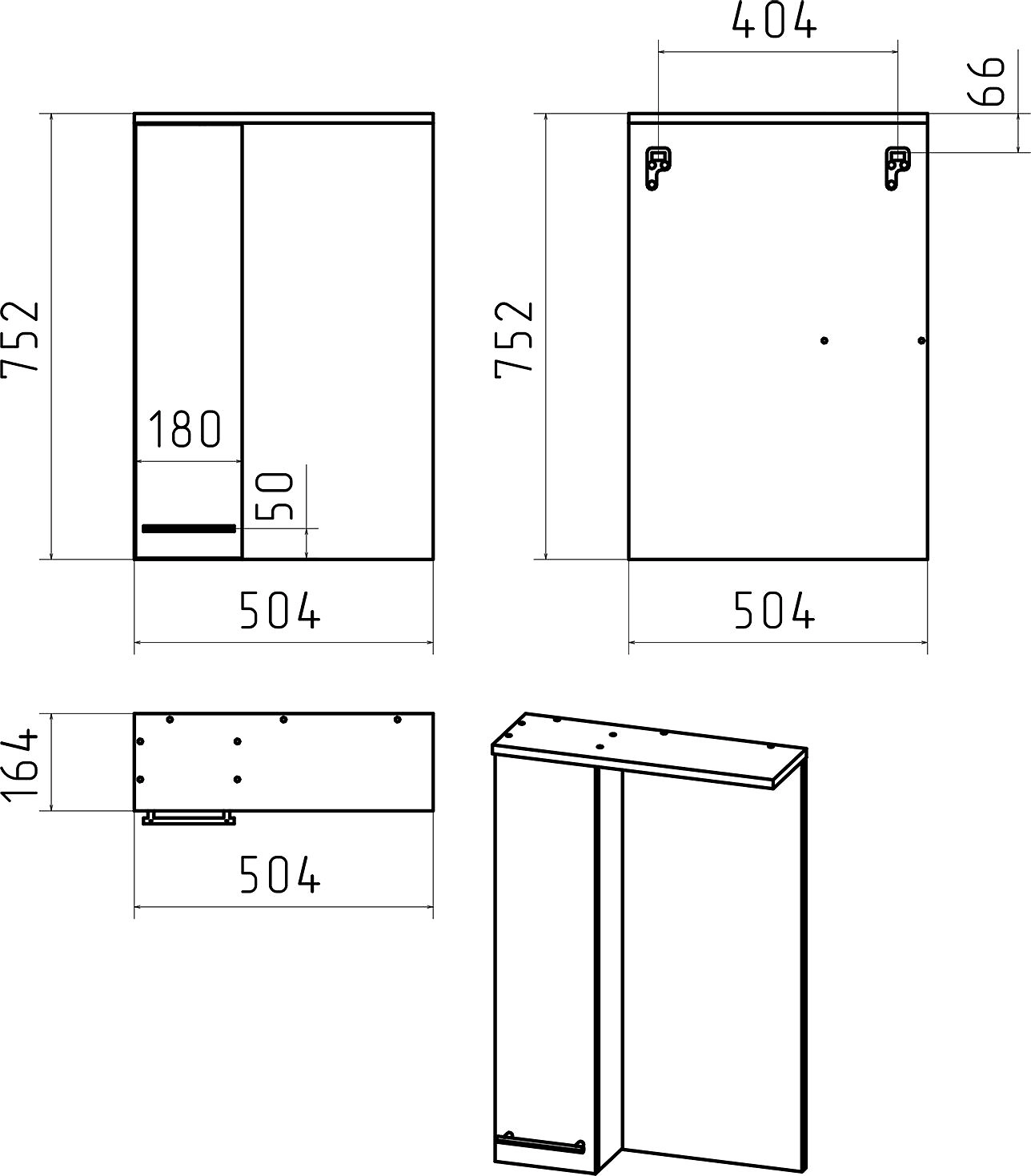 Зеркальные шкафы выпускаются в тех же размерах, что и напольные тумбы, а также их можно заказать с правым или левым расположением шкафчика.