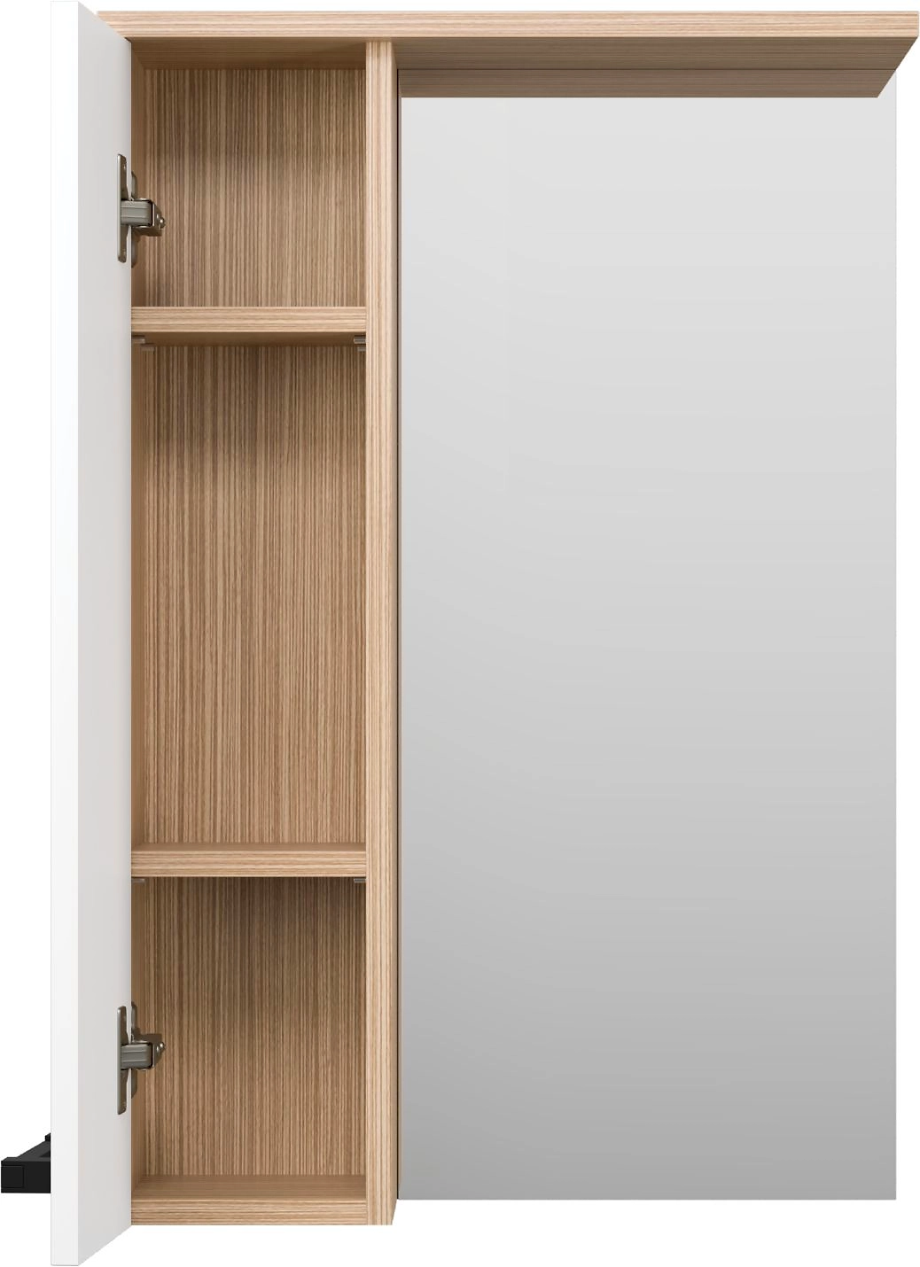 Зеркальный шкаф MISTY Крафт 50х75 см МДФ белый/зебрано левый