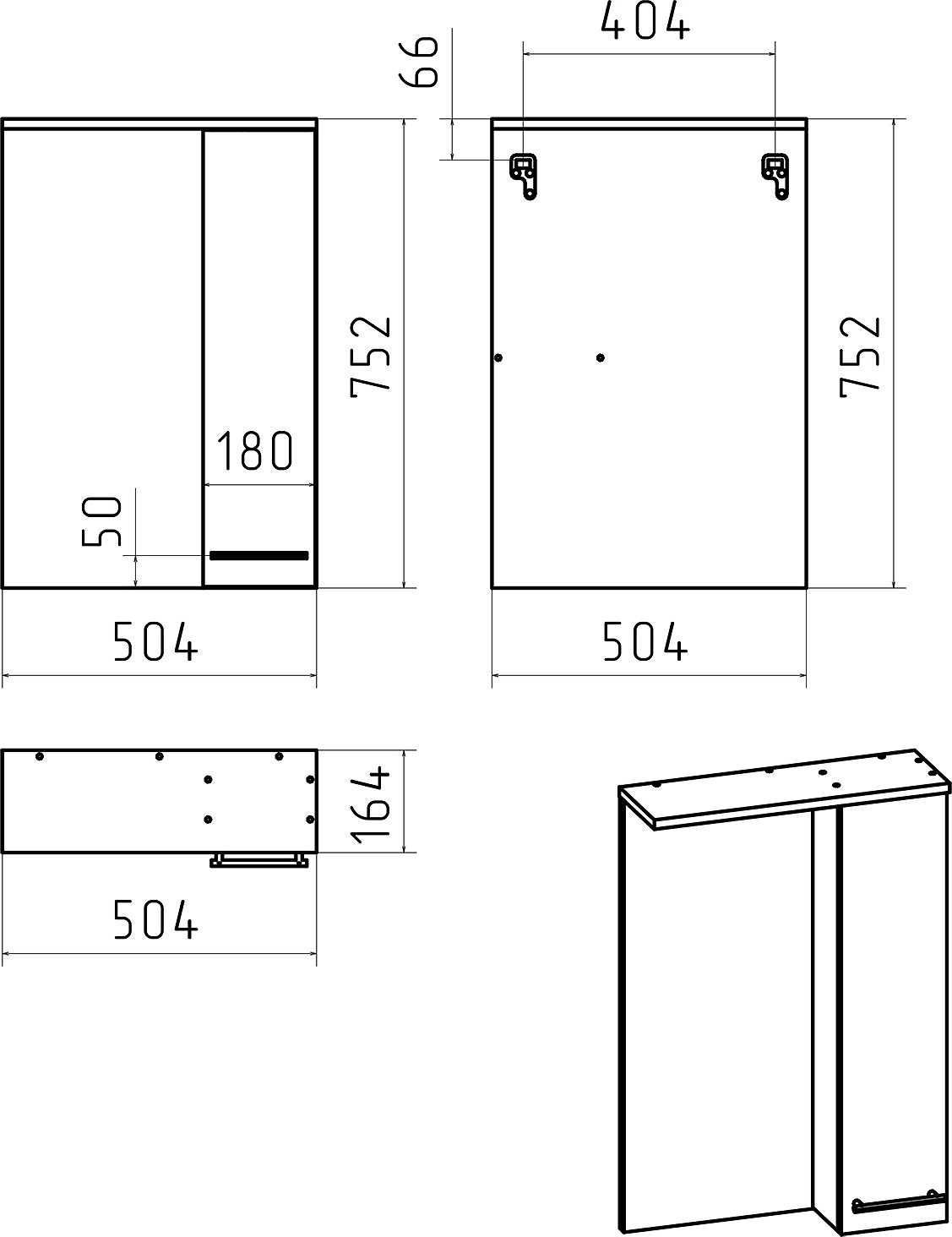 Зеркальные шкафы выпускаются в тех же размерах, что и напольные тумбы, а также их можно заказать с правым или левым расположением шкафчика.