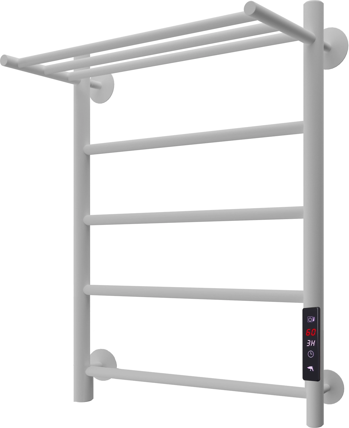 Полотенцесушитель электрический АРГО «Классика Гранд с полкой» — прибор для сушки полотенец, одежды и прочего текстиля. Изготовлен из окрашенной стали. На перекладинах удобно размещаются полотенца разных размеров, спальные принадлежности, нижнее белье, носки и другие вещи. Конструкция крепится к стене в ванной. Полотенцесушитель используется не только для быстрой сушки вещей после стирки, но и для поддержания комфортной температуры и влажности в ванной. Ipx4. Оснащается микропроцессорным регулятором температуры и цифровым восьмипозиционным таймером. Для наглядности управления на полотенцесушитель установлена сенсорная ЖК панель. Электрический шнур длиной 1,5 м располагается слева.