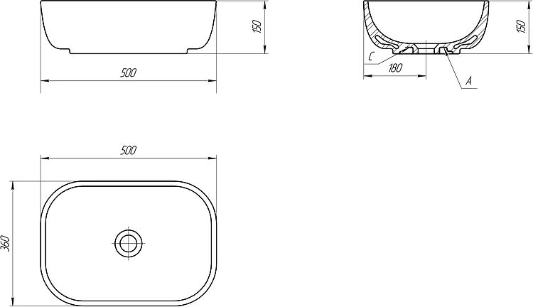 Раковина для столешницы CERSANIT Moduo 50x15x36 см