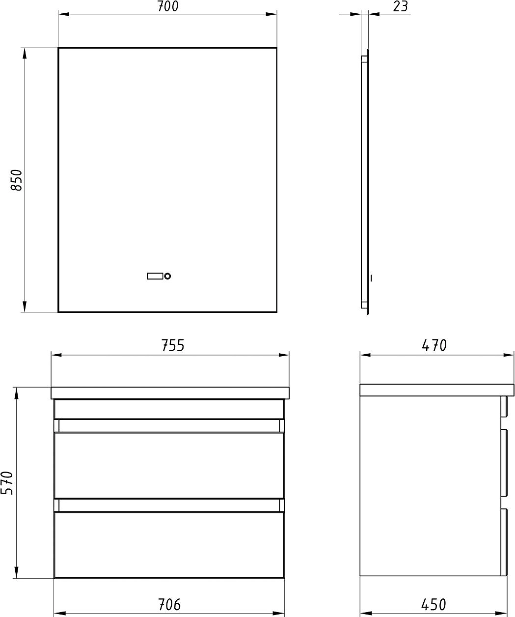 Раковина для тумбы Элина белый 75 см