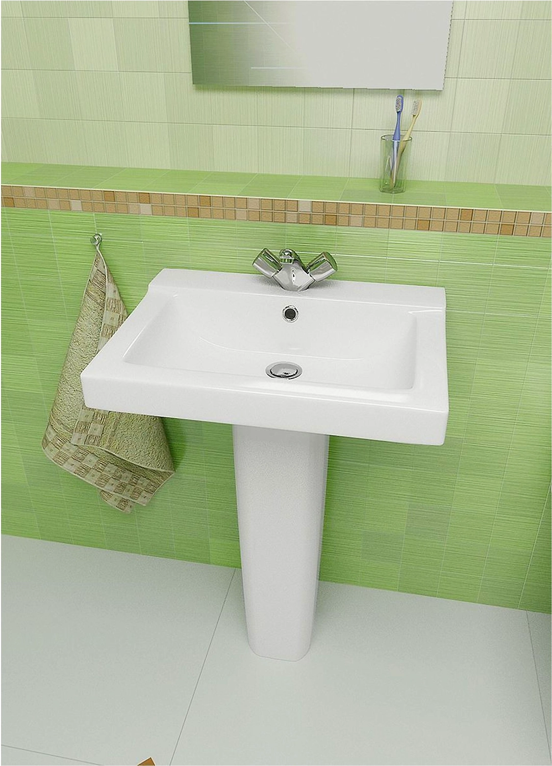 Раковина монтируется на стену с помощью специальных кронштейнов. Подходит для ванных комнат и санузлов в жилых и нежилых помещениях.