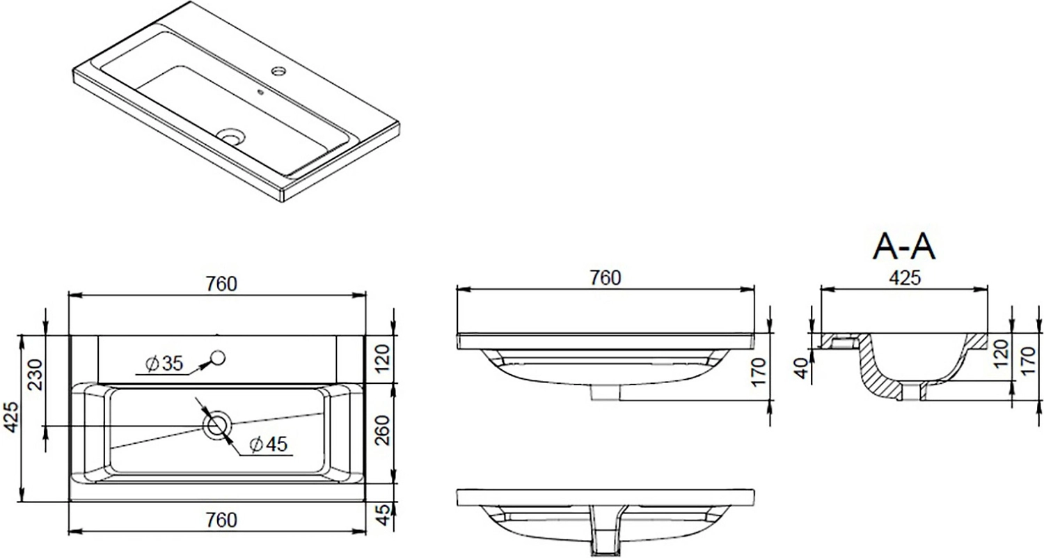 • Количество отверстий под смеситель 1