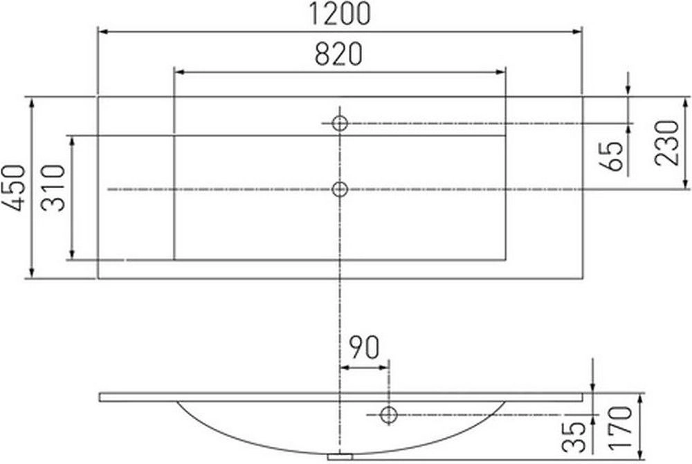 Раковина АКВАТОН Премьер 120 см устанавливается накладным способом на тумбу подходящего размера.