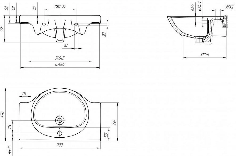 \- Отверстие под перелив предотвращает протечку воды при закрытом или засоренном сливе.