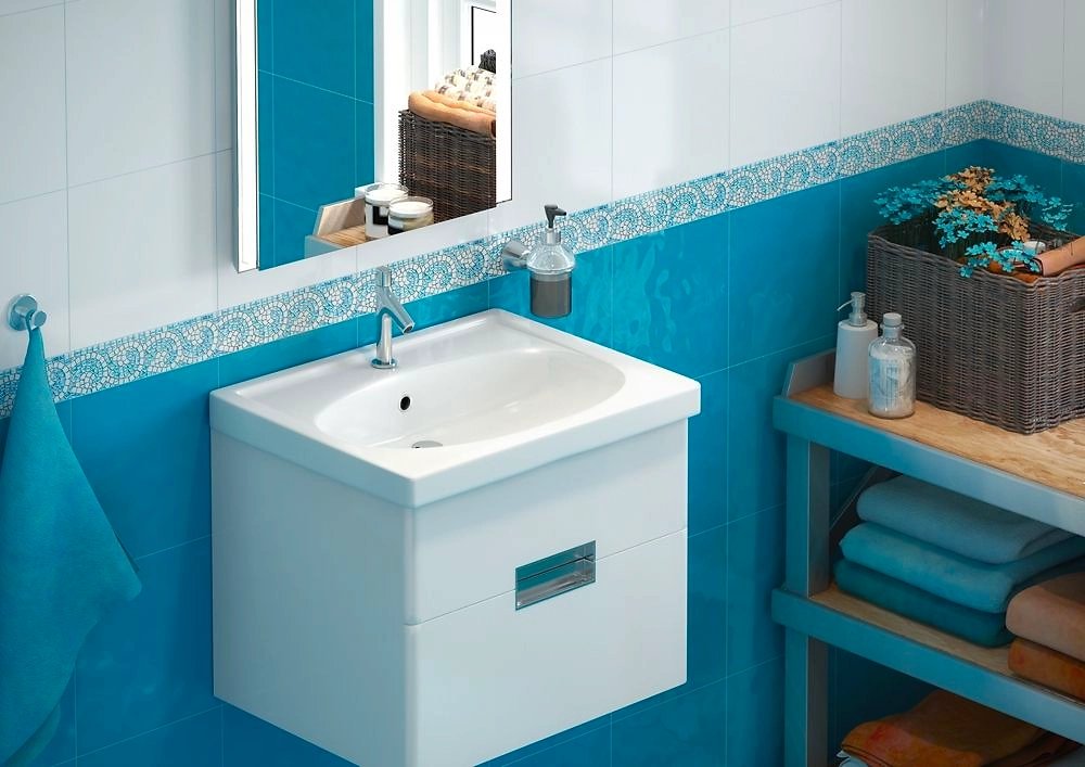 Раковина для ванной комнаты Калипсо 60 подходит для установки на тумбу или столешницу российской фирмы АСБ-Мебель.