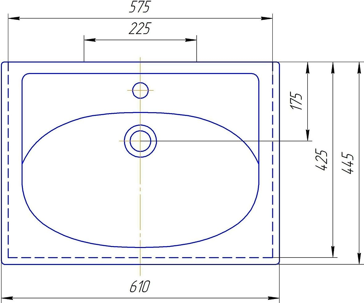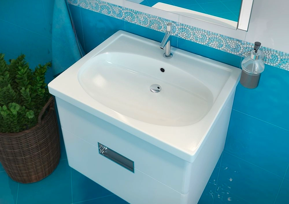 Раковина для ванной комнаты Калипсо 60 подходит для установки на тумбу или столешницу российской фирмы АСБ-Мебель. Изделие привлекает внимание современным дизайном с оригинальным сочетанием геометрических форм. Широкие прямоугольные борта обрамляют глубокую овальную чашу.
