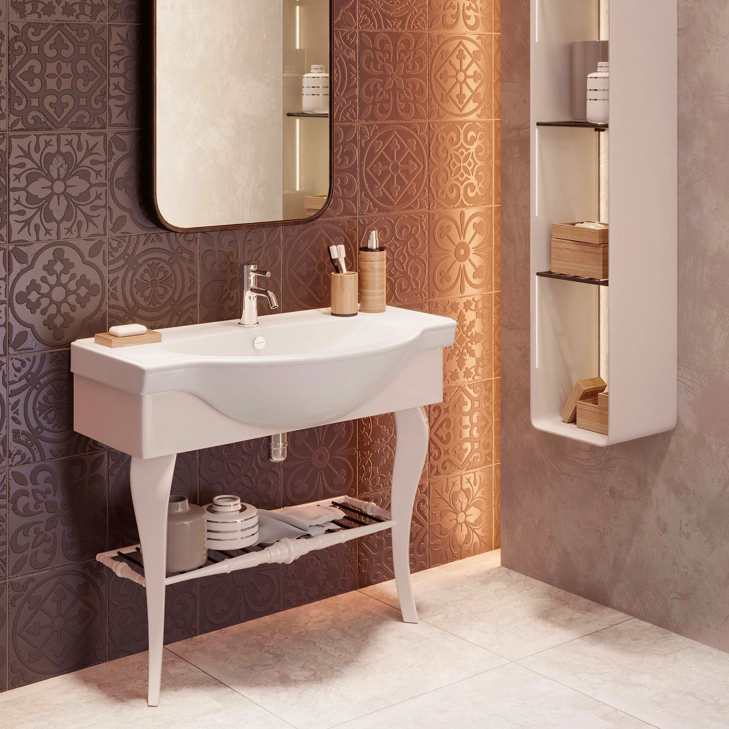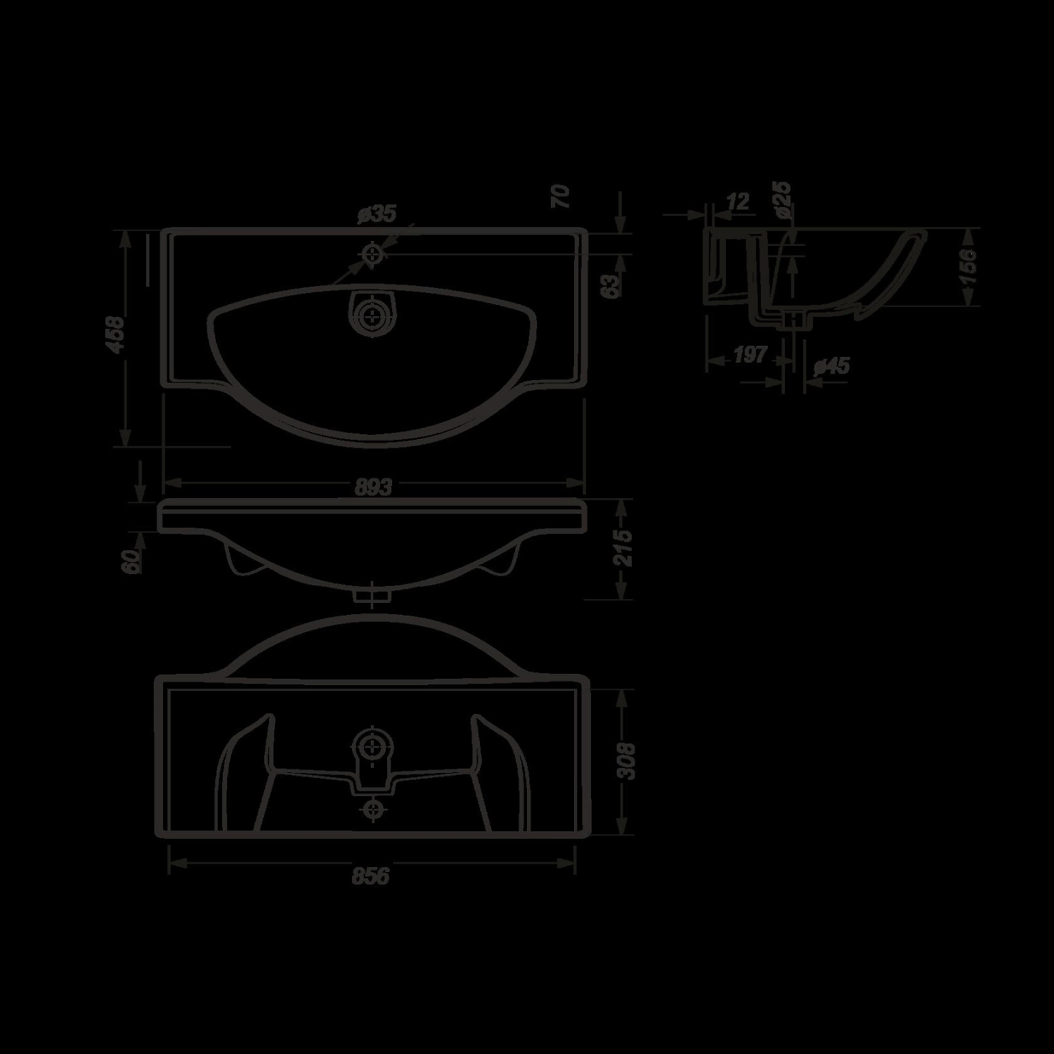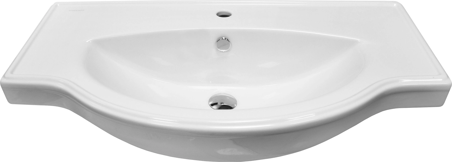 Изделие содержит три отверстия, предназначенные для установки смесителя и подводки труб. Стандартизированная форма, совместимая с мебельной продукцией, преобладание скруглённых линий, гармонизирующих пространство, наличие отверстия, предотвращающего перелив через края.