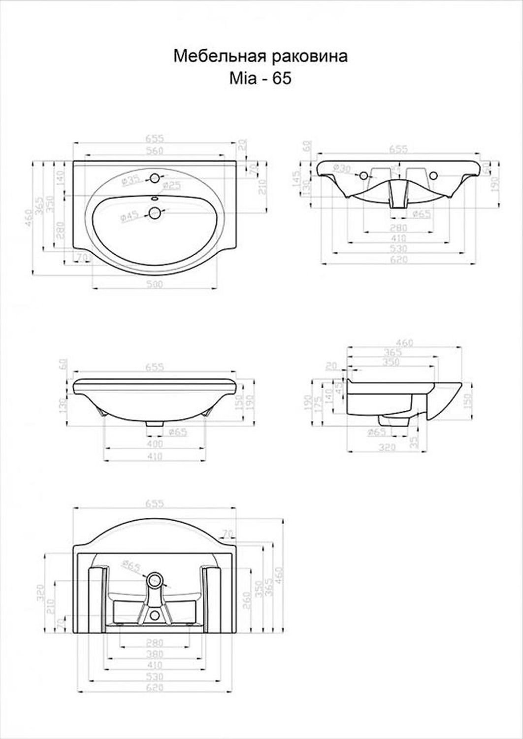 Раковина полувстраиваемая Della Mia T106501111 65 см