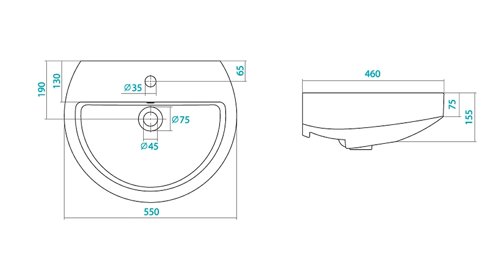 Santek Аллегро - компактная полукруглая раковина шириной 55 см, предназначенная для установки на пьедестал.