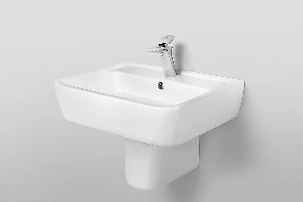 Компактная раковина устанавливается на пьедестал, полупьедестал или столешницу в ванной комнате или уборной жилых и коммерческих помещений.
