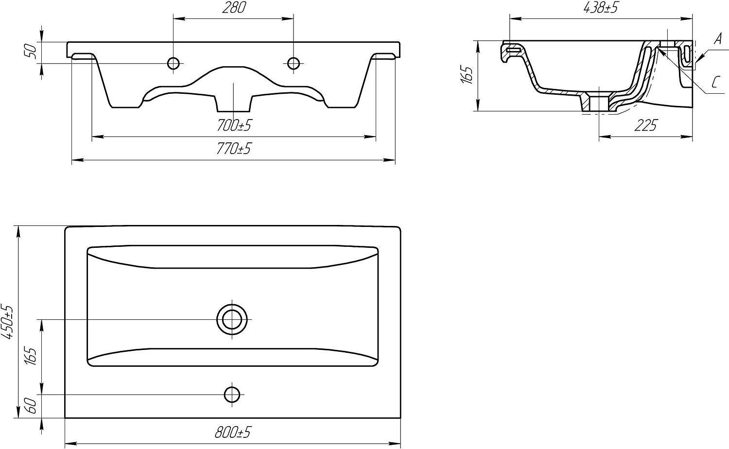 - Предусмотрено центральное отверстие для смесителя и перелив.