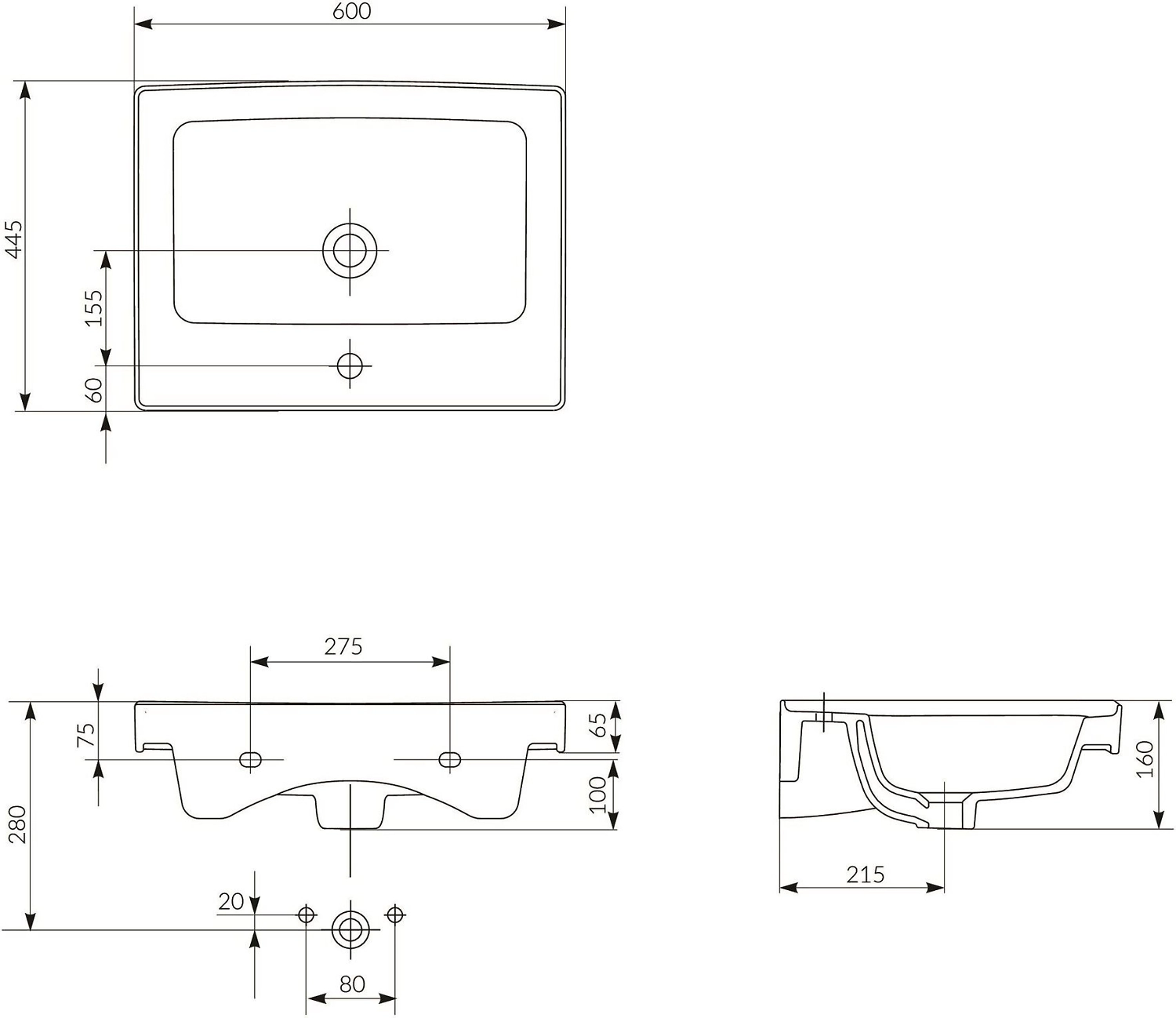 Раковина встраиваемая Cersanit CREA UM-CRE60/1 60 см