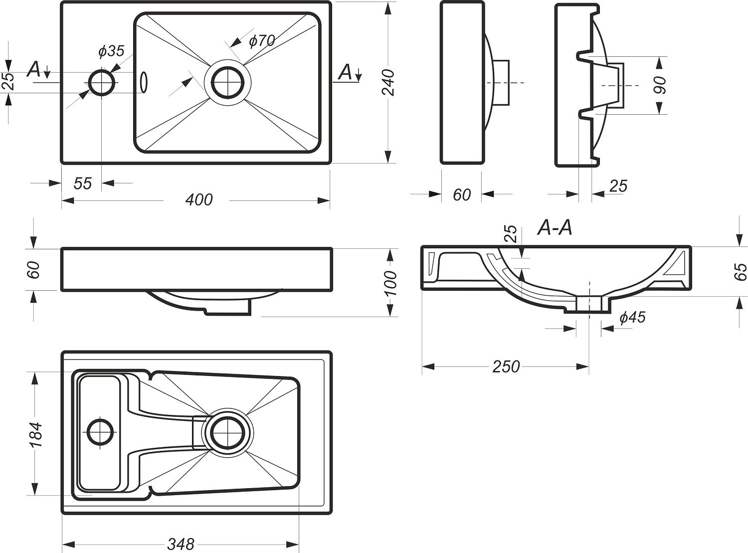 Умывальник накладной SANITA LUXE FEST 40, 10x40x24 см