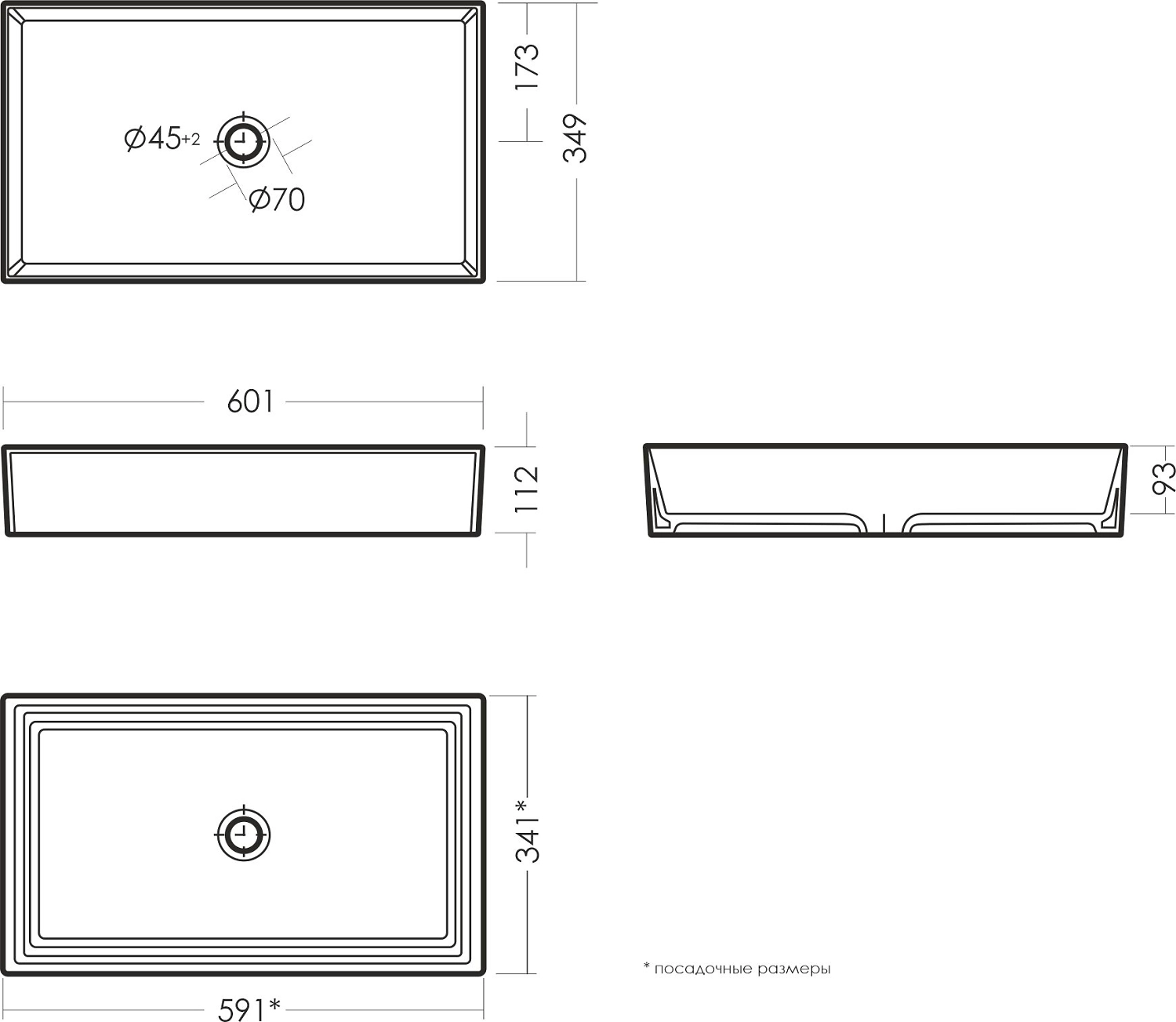 Умывальник накладной SANITA Luxe Novel SL 60x34x11 см