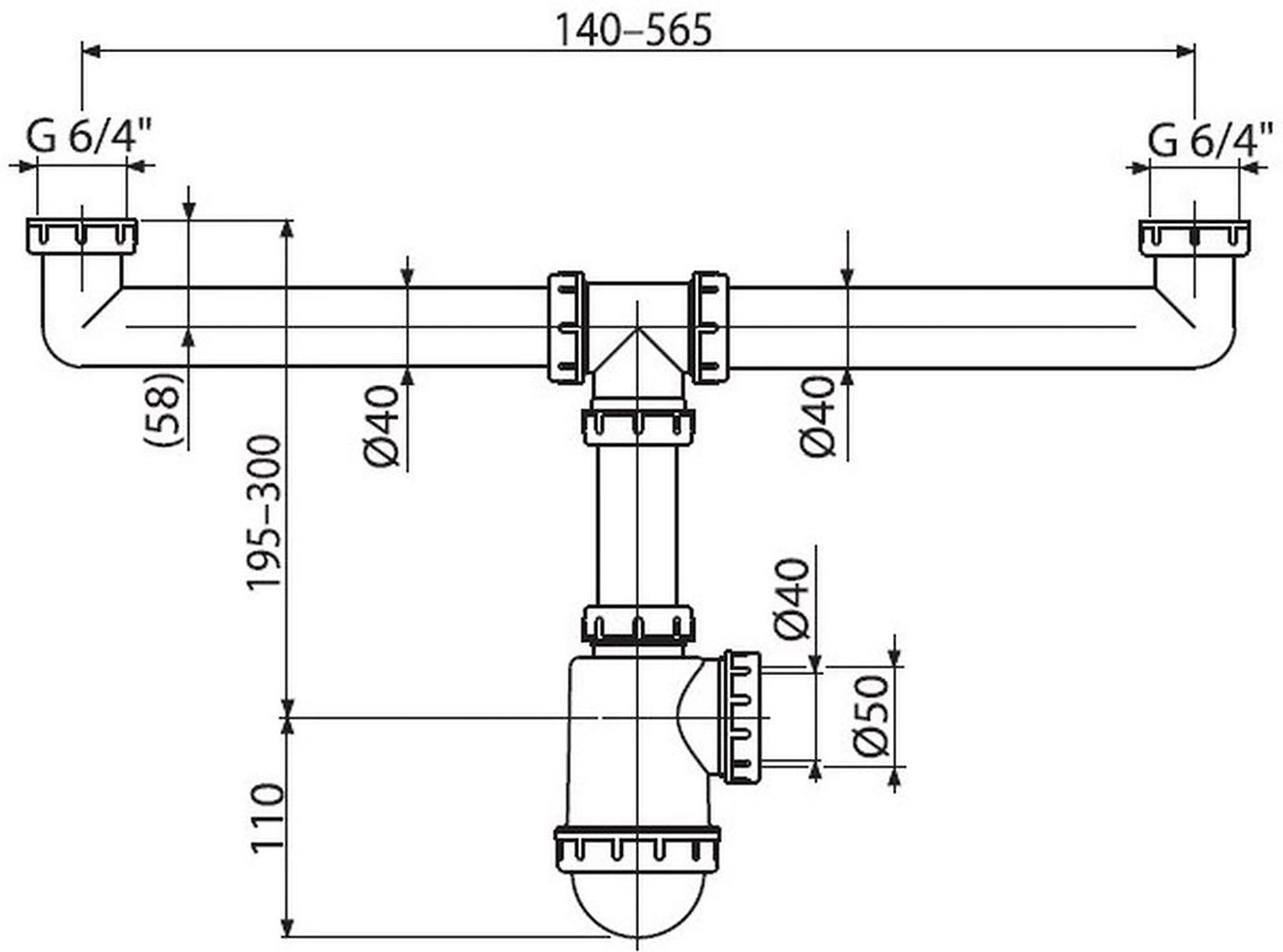 Сифон для мойки AlcaPLAST A448-DN50/40 1 1/2" 40 мм